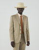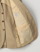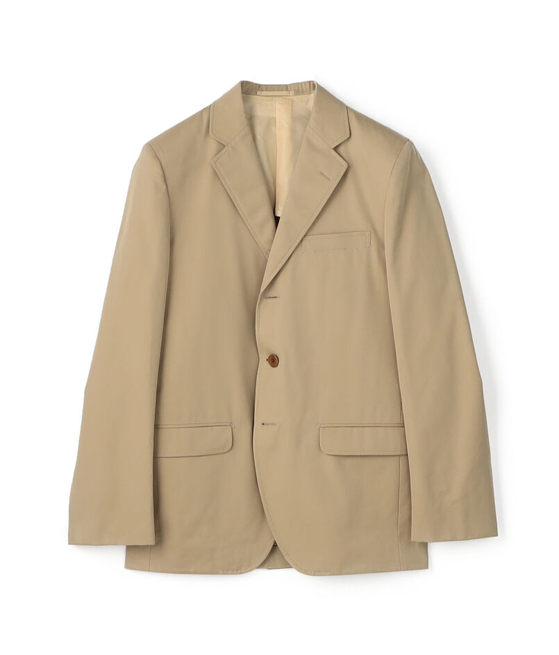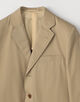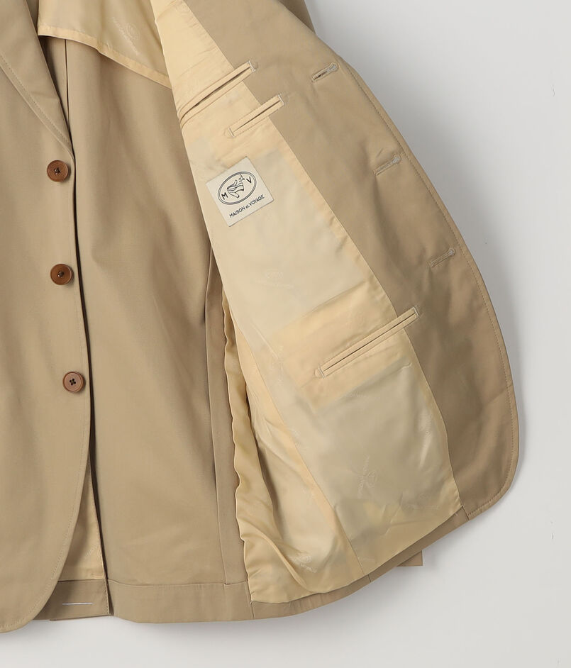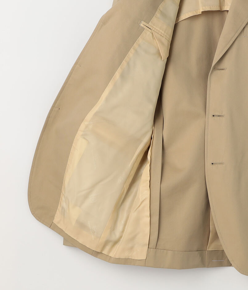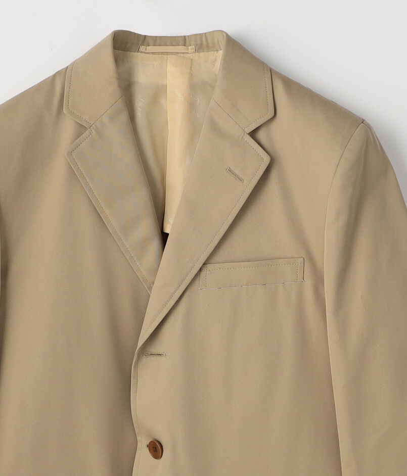 ナチュラルショルダー、センターフックベントといったディテールに、素材の特性に合わたハーフキャンバス仕立てが特徴のジャケット。