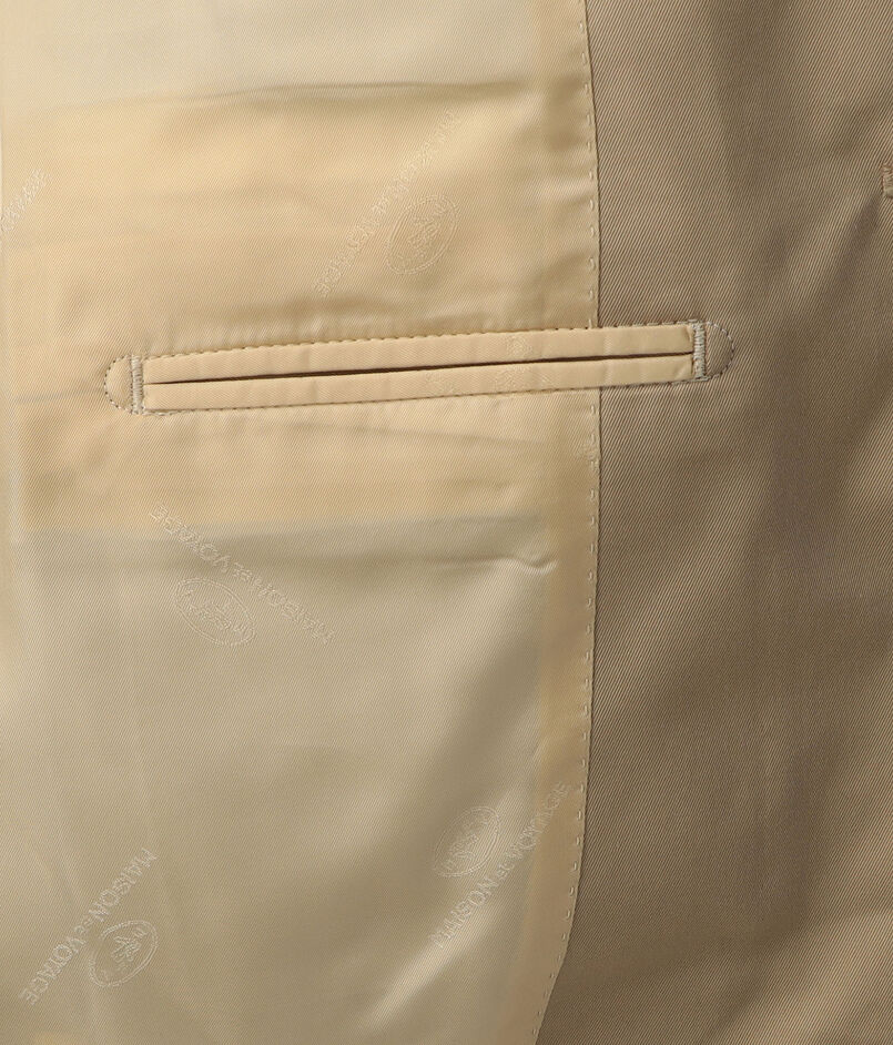 入念なアイロン工程による立体縫製を施した、身体のラインを包み込む丸い仕上がりになるように、フルキャンバス仕立てを得意とするスーツの縫製工場のトップラインにて縫製しています。