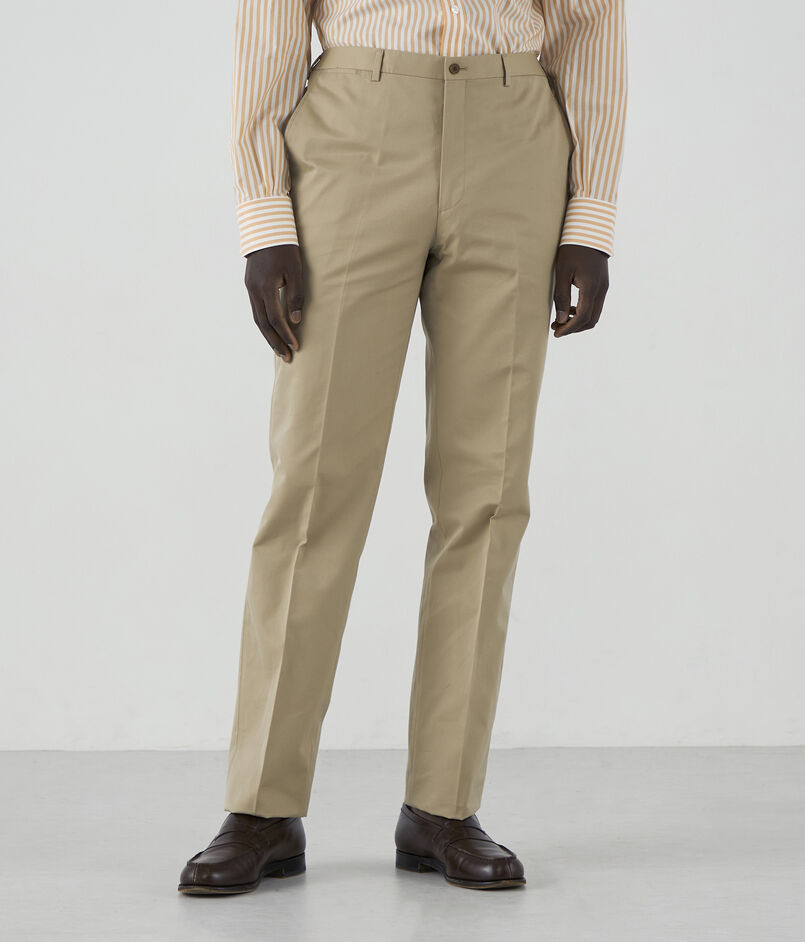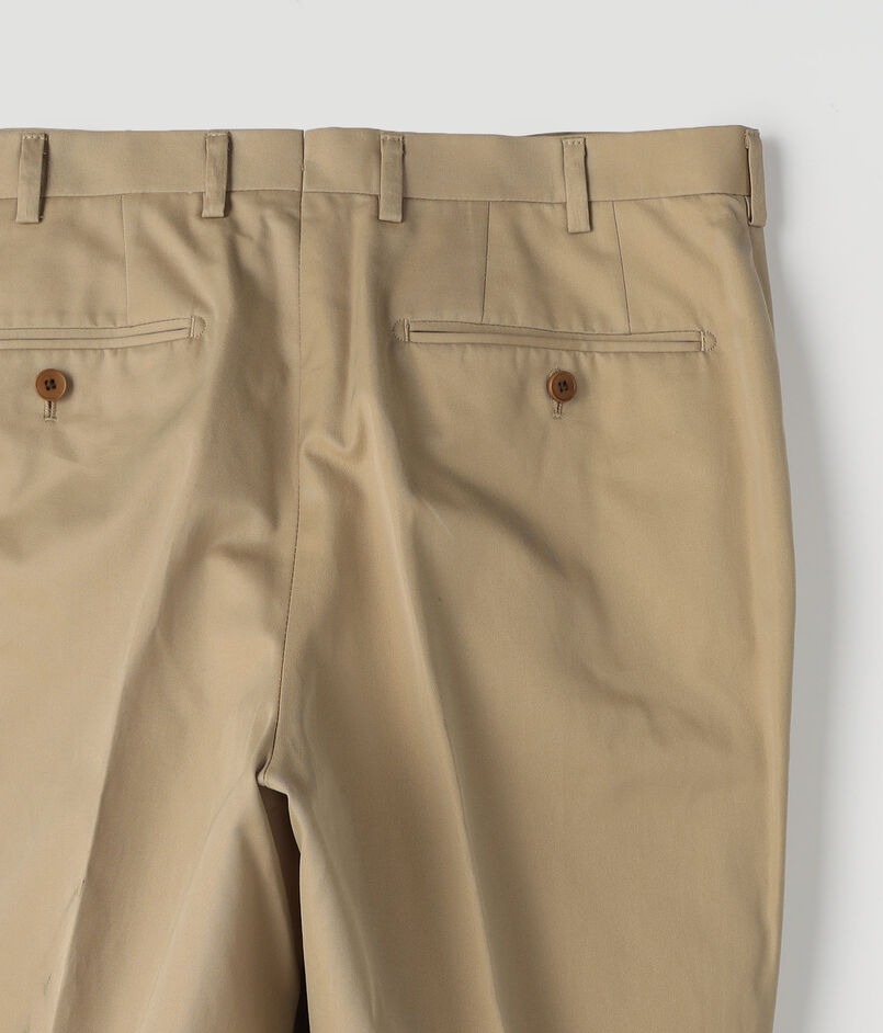 パンツはほどよいテーパードシルエットながら、ワタリ巾から裾巾の差寸が少ないパイプドステムというお決まりのシルエットを踏襲した、ノープリーツモデル。