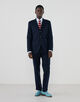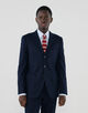 ウエストダーツの無い、絞りのゆるいDROP5シルエットのシングルブレステッド3Bスーツ。