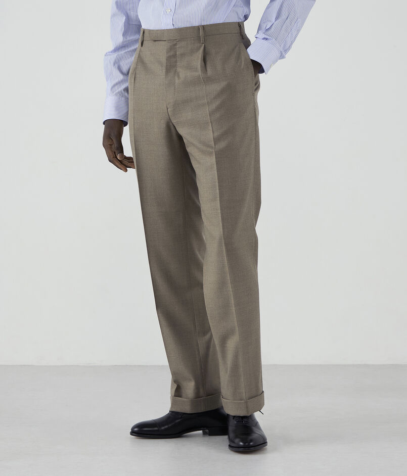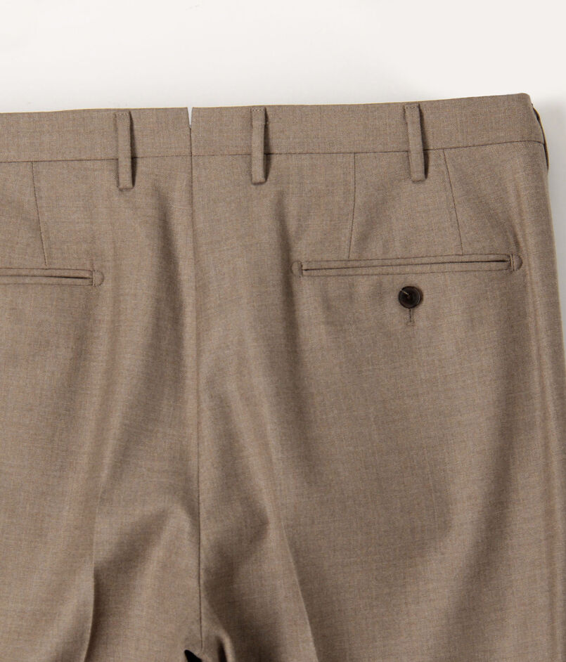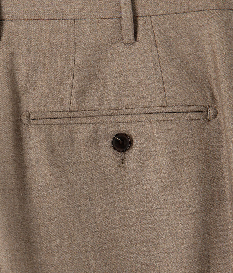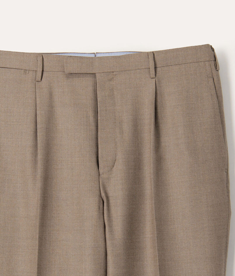 パンツはアウト1プリーツのテーパードシルエットで、なだらかにテーパードするようなストレートシルエットを採用。