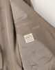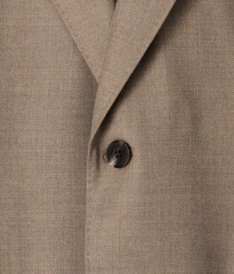 DROP6のほどよいゆとりを持たせたシルエットのジャケットは、構築的な肩回りの縫製により肩先をやや盛り上げたロープドショルダーと、しっかりとしたフルキャンバス仕立てが特徴のモデルです。
