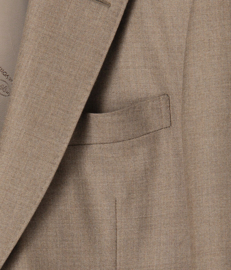 〈Cloth Ermenezild Zegna〉の『Magnifico 15』はオーストラリアンスーパーファインメリノの15マイクロン(Super170’s)原毛を使用した、カシミヤに迫る風合いを持ちながらも、330g/mという目付によりしっかりとした着用感が得られるミルドサージ素材です。