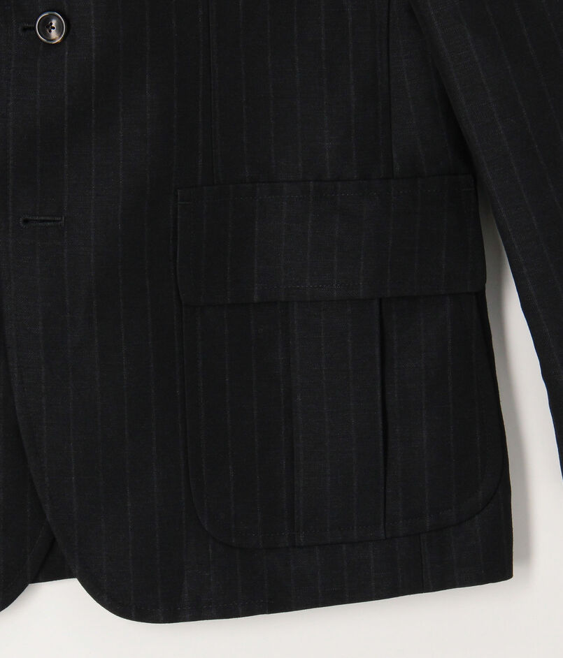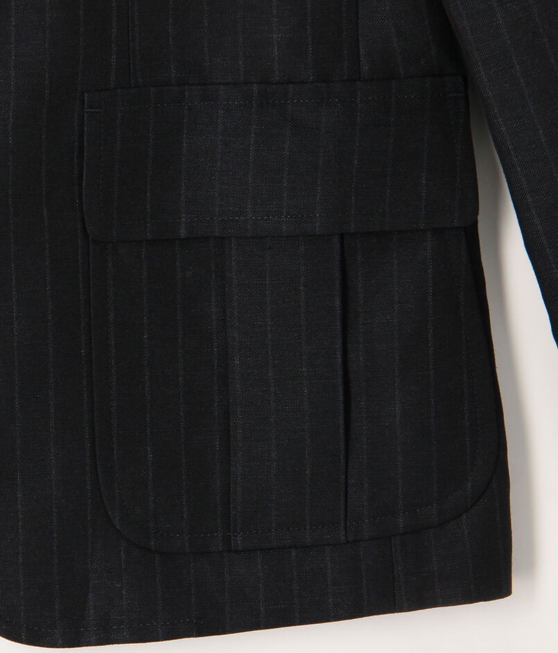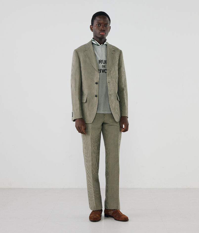 ジャケットは、本格的な毛芯仕立てを採用したハンティングスタイル。フィッシュマウスラペルと3ボタン段返り仕様が、無骨なスポーツジャケットに洗練されたフレンチテイストを加えています。