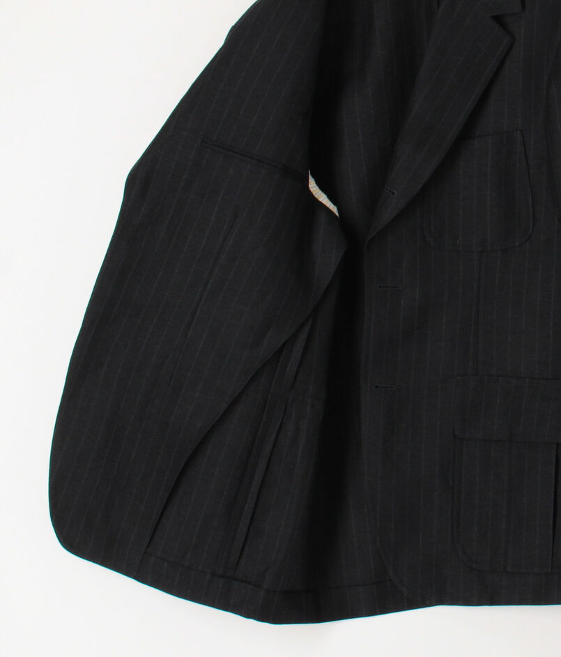 リネンとウールを絶妙に混紡したドライな素材感。高密度ながらも通気性に優れ、ヴィンテージルックな奥行きのある表情が、夏の旅路に相応しいオーセンティックな風格を醸し出します。
