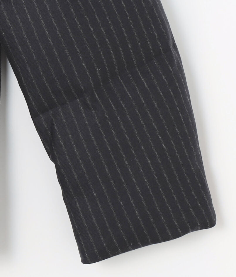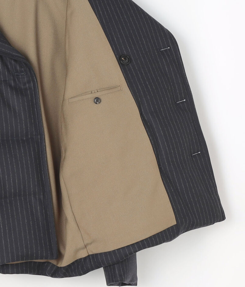 極細のクオリティであるSuper160'sウールの紡毛糸を織り上げ、世界のメゾンブランドでも使用される加工工場にて、究極の縮絨工程を入れ、生地に芯とハリを残しながら、極めてソフトな風合の生地に仕上げています。