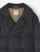 デザインはダブルブレステッドのショートダウンブルゾン。着丈短めで着用感も軽いため、車などでの移動の際も重宝します。ピーコートライクなデザインが新鮮な1着です。