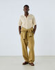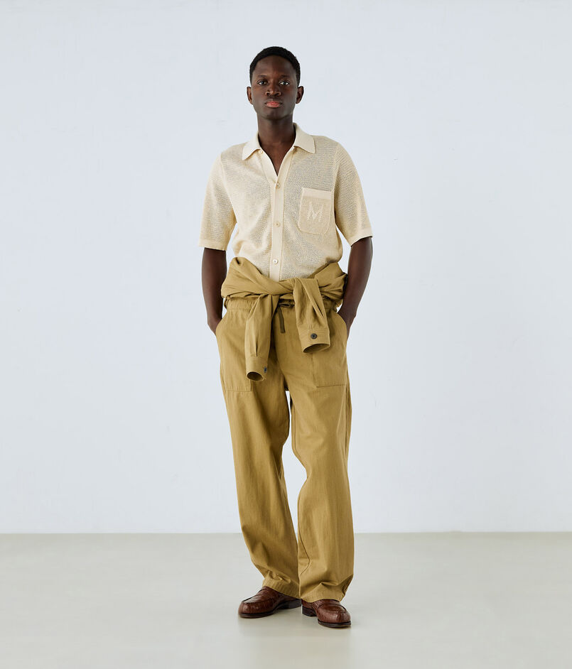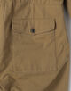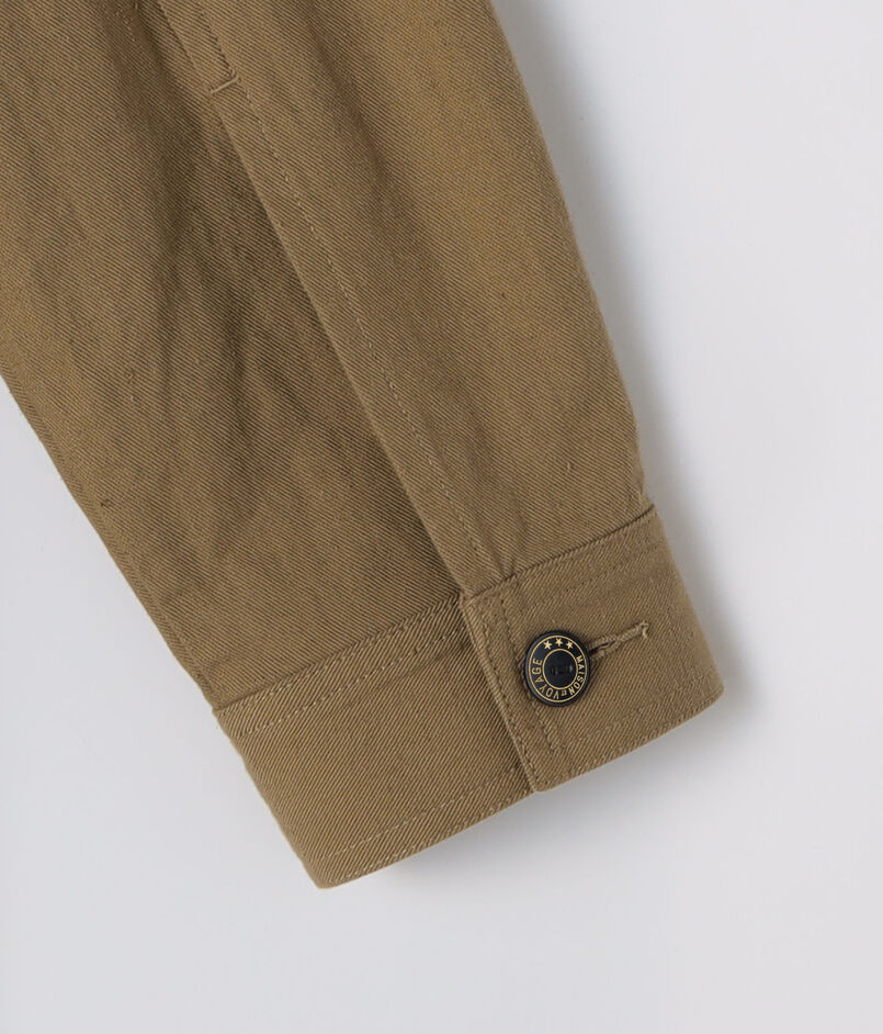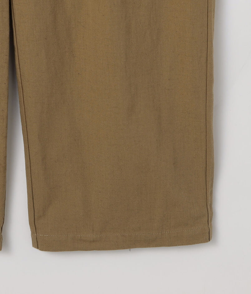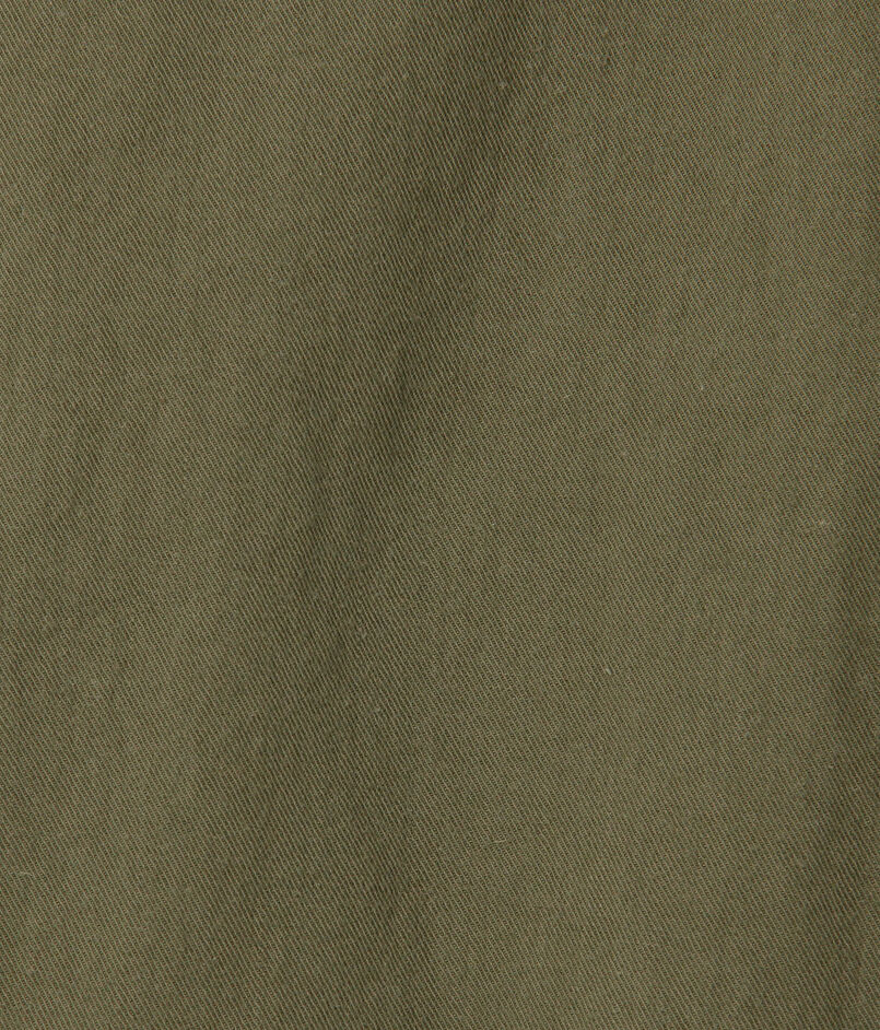 産業革命以前の旧式な「英式紡績」で糸を引いた、独特な風合いのコットン・ヘンプチノ素材を使用。40年代のグルカパンツを彷彿とさせる、不均一なムラ感と、タンブラー仕上げによる独特のシボ感が魅力です。