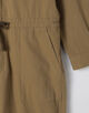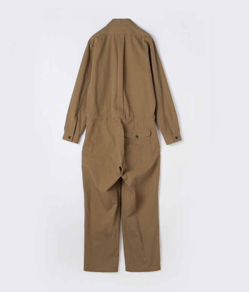 飛行服として着用されたジャンプスーツをベースに、現代的に再構築。丸みのある小ぶりの襟や比翼仕立てが、ワークな雰囲気を和らげ、洗練された印象を与えます。ウエストの紐でシルエットの調整が可能。パンツ部分は太すぎないすっきりとしたシルエットで、きれいめなスタイリングとも相性が良く、幅広い着こなしが楽しめます。イタリア製の〈MAISON et VOYAGE〉オリジナルボタンも、さりげない上質さを物語ります。