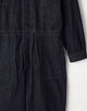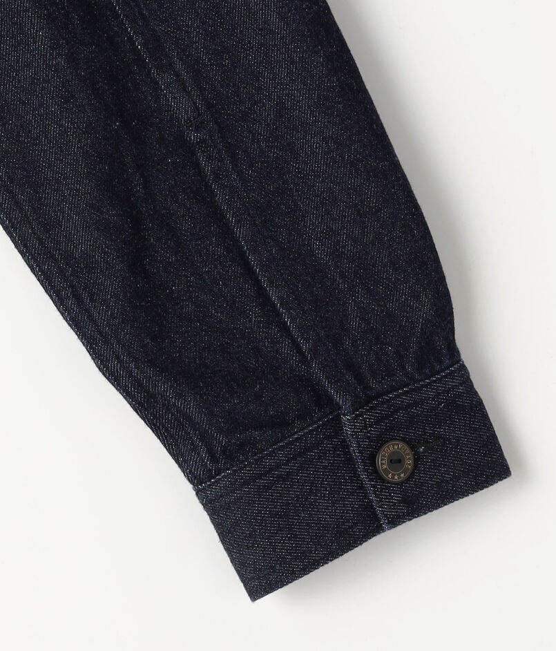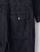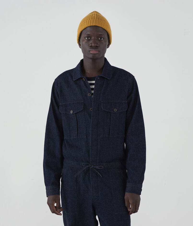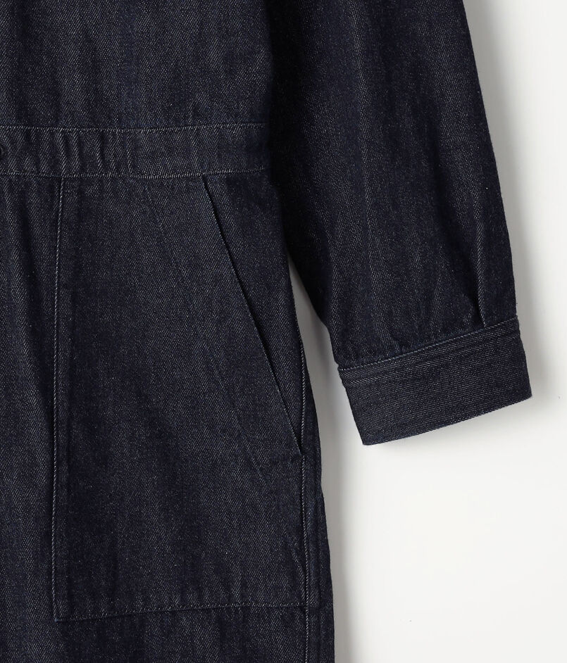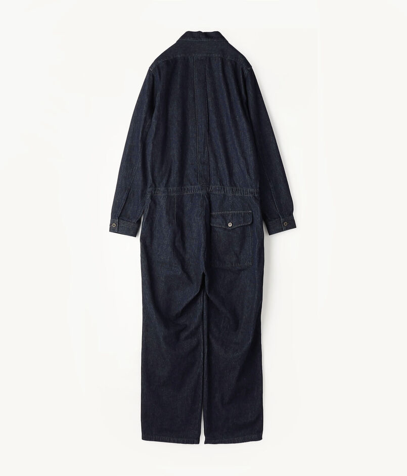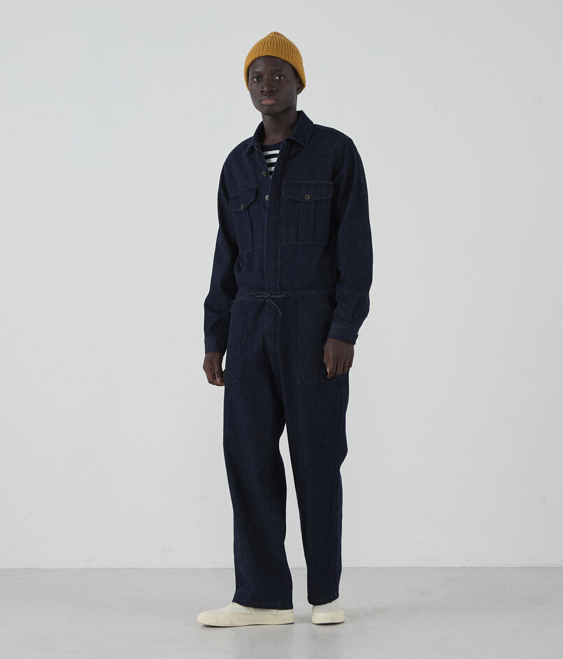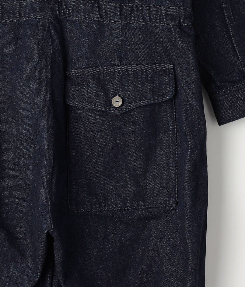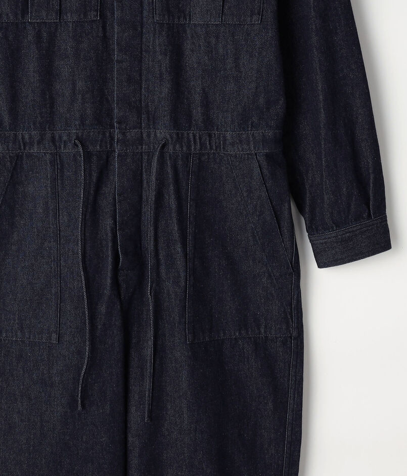 飛行服にルーツを持つ、クラシックなジャンプスーツを現代的に再解釈しました。アメリカ綿を使い、柔らかさと耐久性を両立させたオリジナルデニム生地は、独特のムラ感と鮮やかな藍色が特徴です。