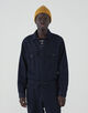 丸みのある小ぶりの襟や比翼仕立てが、ワークウェアの無骨さを和らげ、洗練された印象を与えます。ウエストの紐でシルエットの調整が可能。パンツ部分はすっきりとしたシルエットなので、きれいめなスタイルとも相性が良く、品のあるカジュアルスタイルを演出します。イタリア製の〈MAISON et VOYAGE〉オリジナルボタンも、さりげないアクセントです。