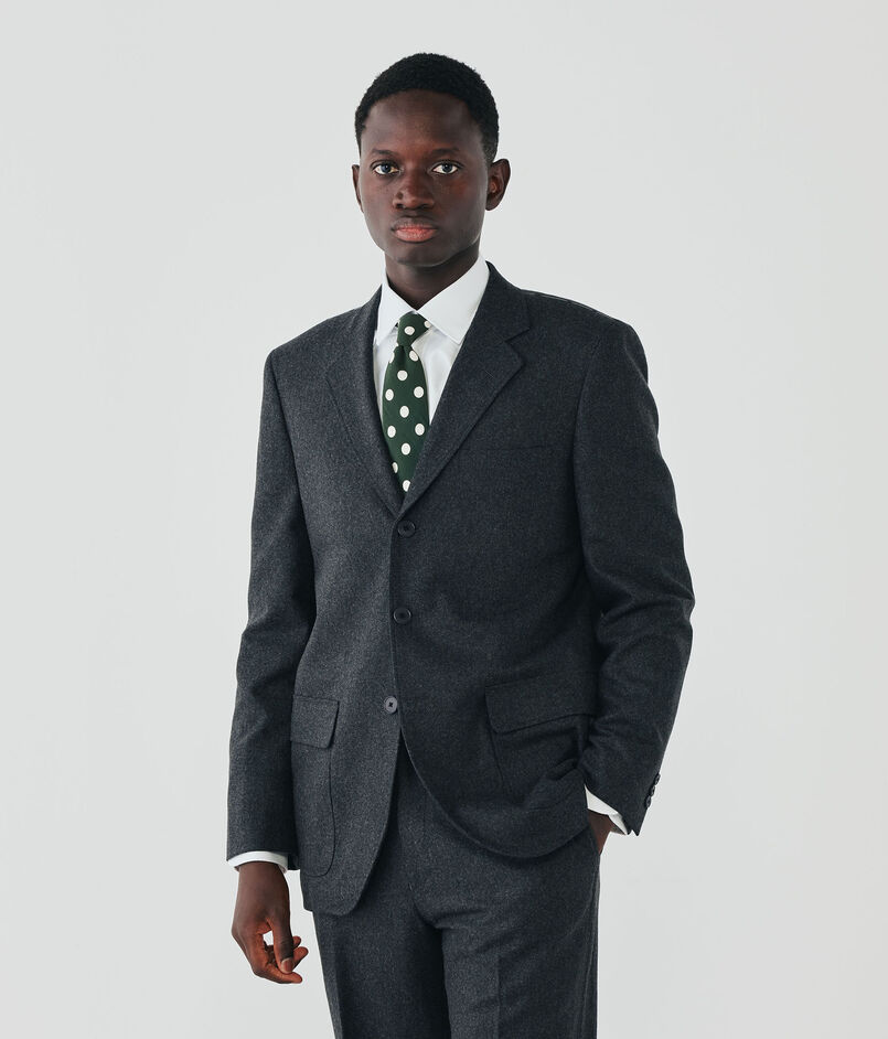スーツやジャケットのラペル幅や肩幅、シャツの襟型に合った大きさのノットを作るために異なるサイズのネクタイを展開しています。