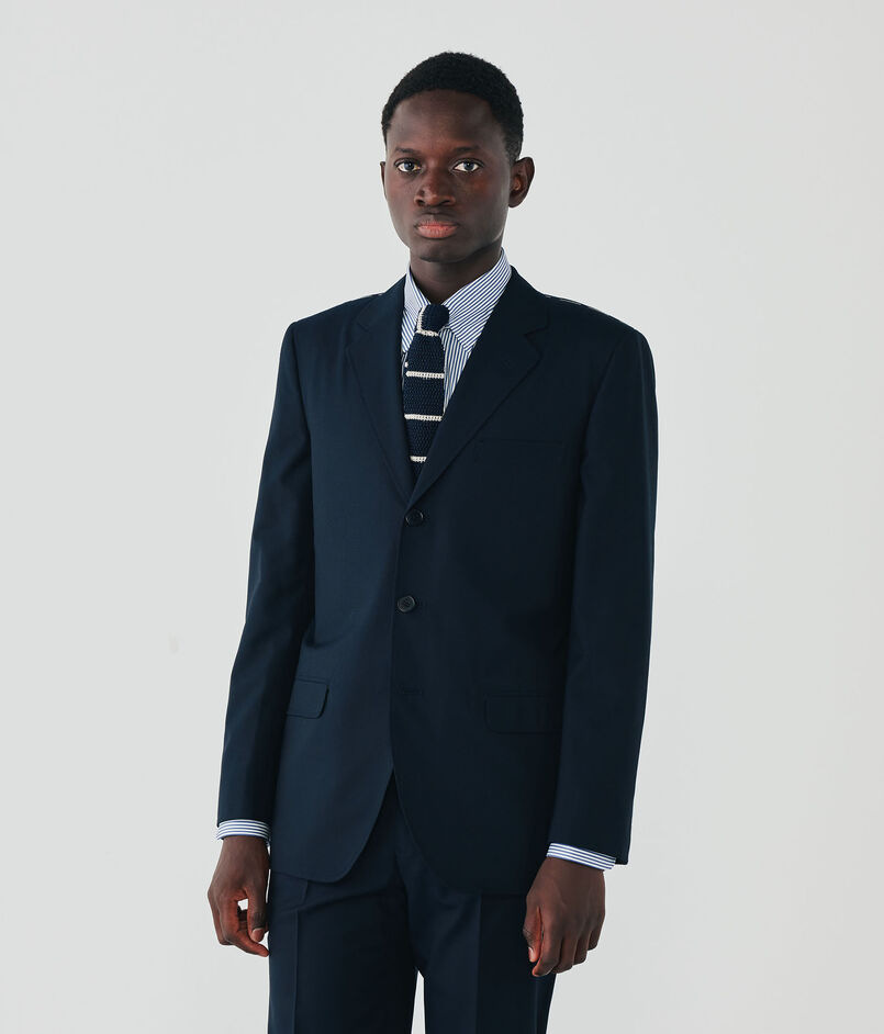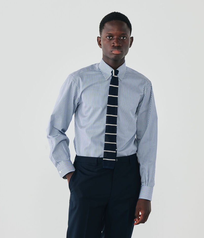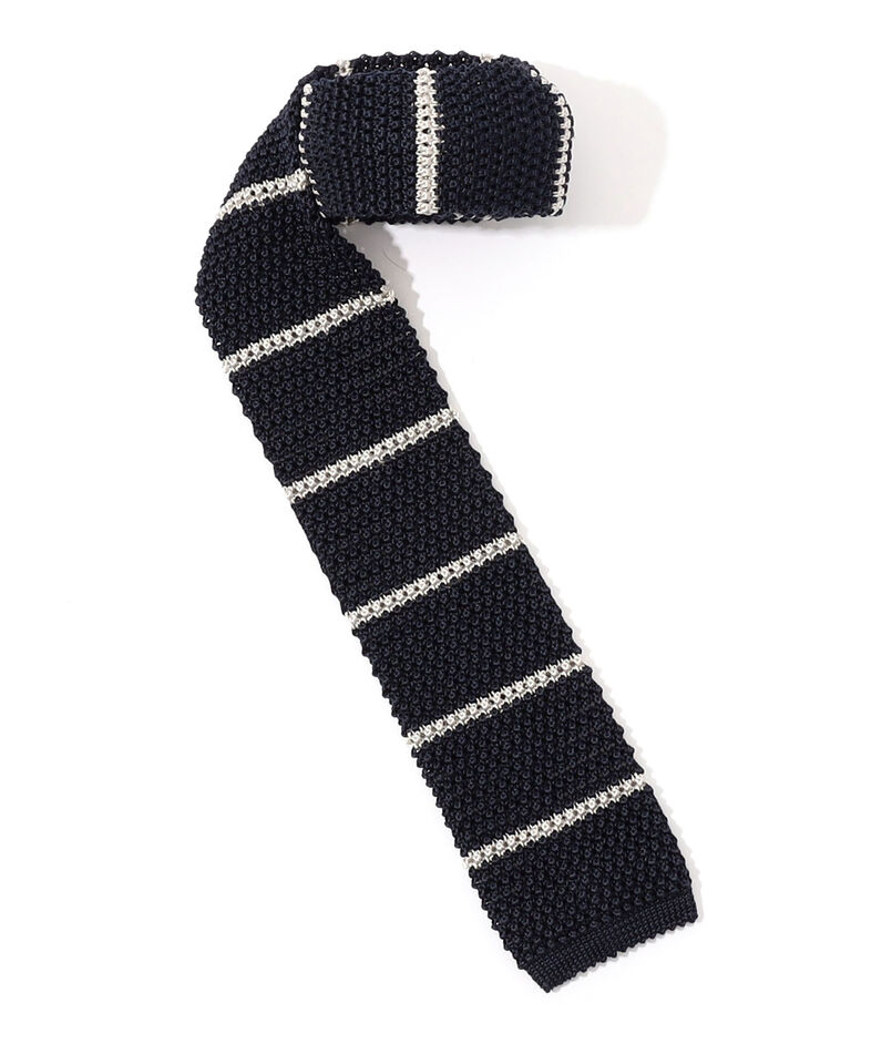 結んだ際のノットが小さくまとまるバランスのボーダーニットタイ。