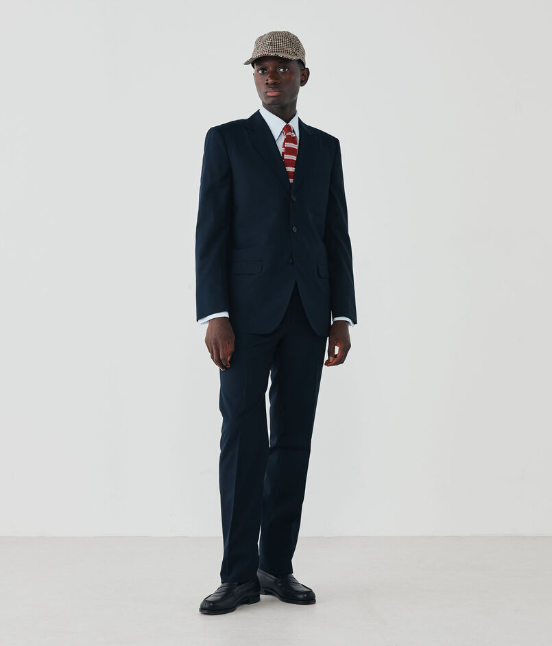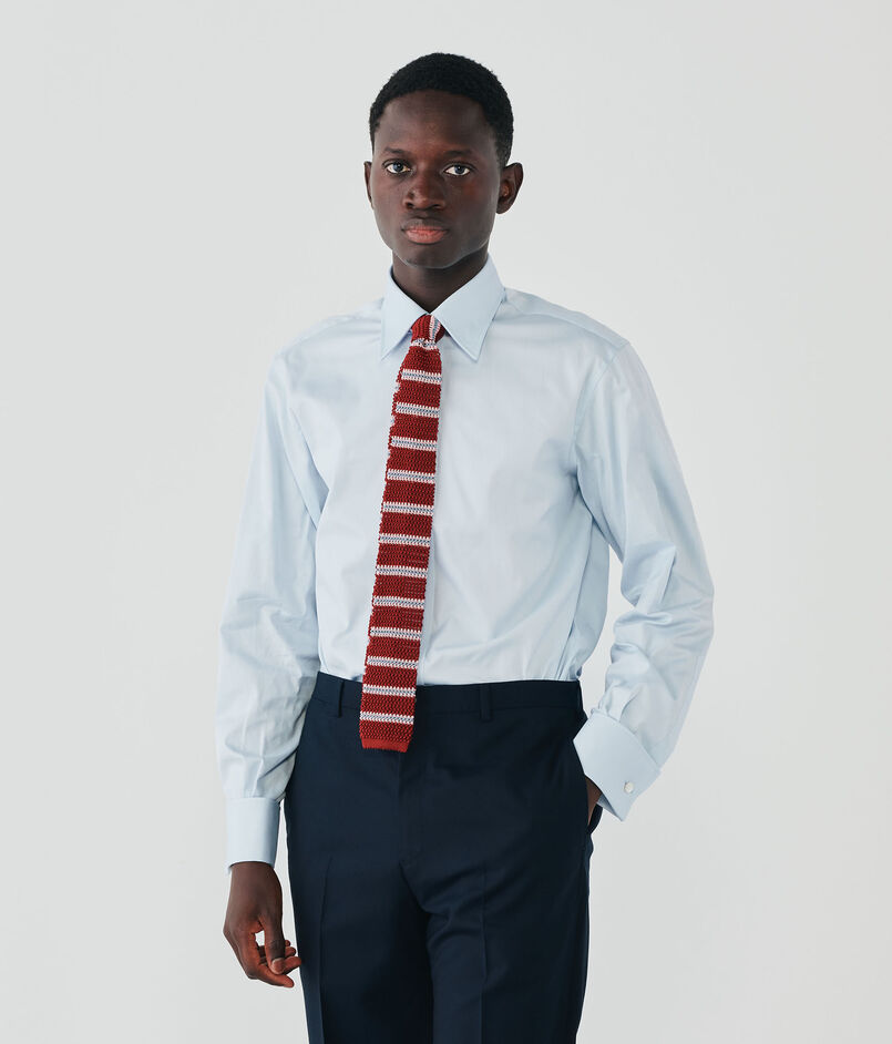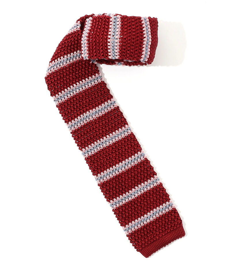 結んだ際のノットが小さくまとまるバランスのボーダーニットタイ。