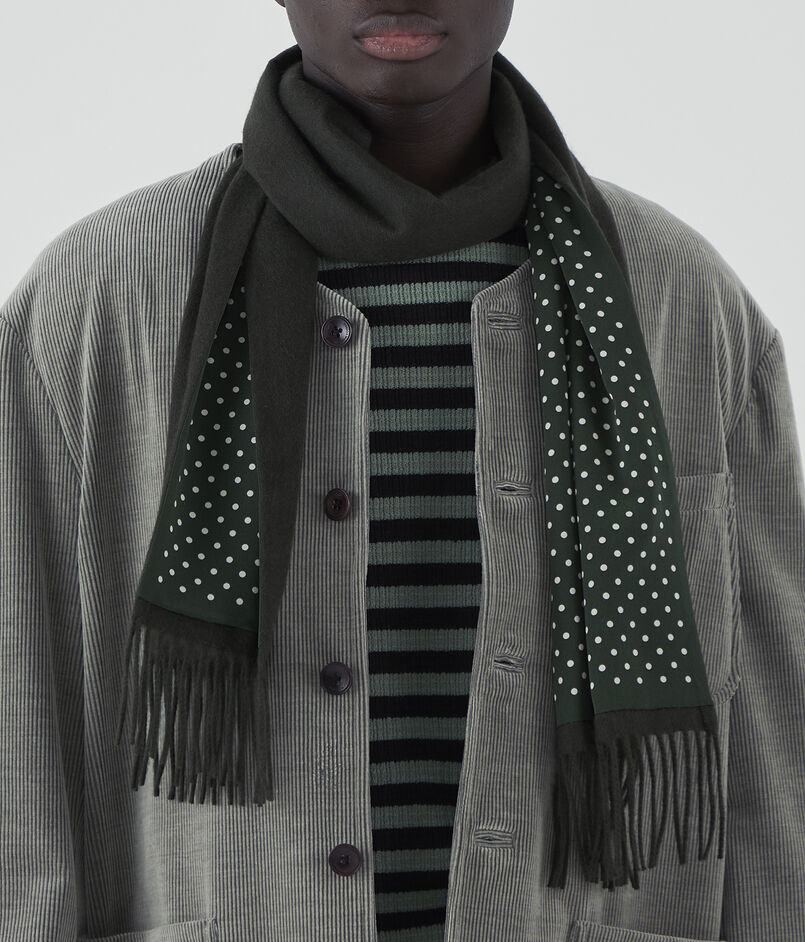 カシミヤとシルクを張り合わせたリバーシブルストール。