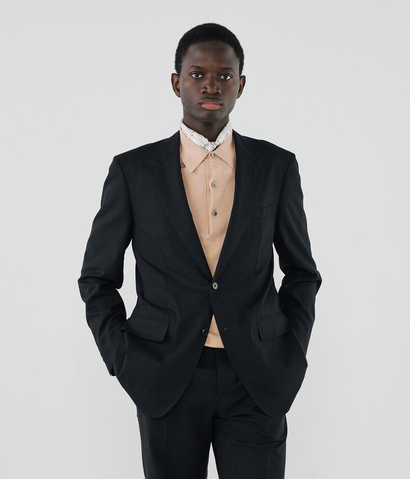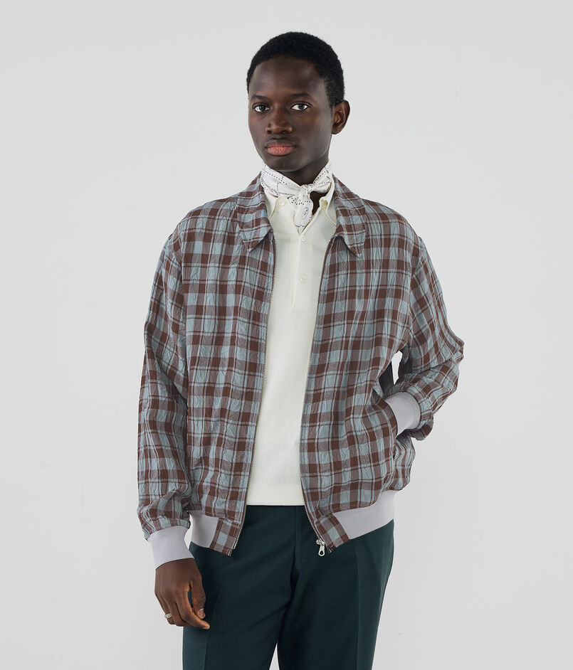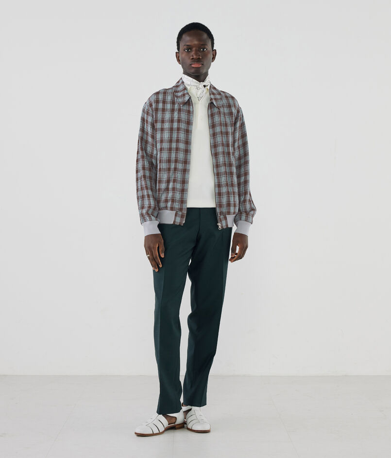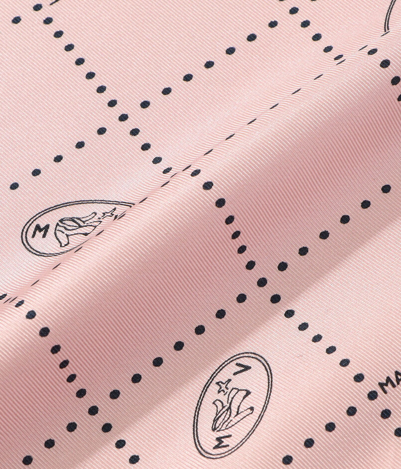 整然としたドットのダイヤモンド柄をベースに、ジャケットモチーフとロゴを織り交ぜた独創的なグラフィック。首元に一差しするだけで、装いに遊び心が吹き込まれます。