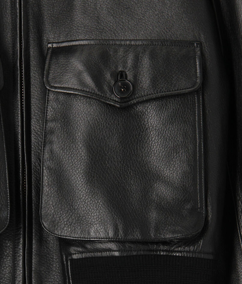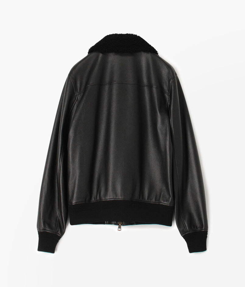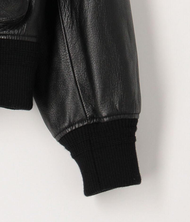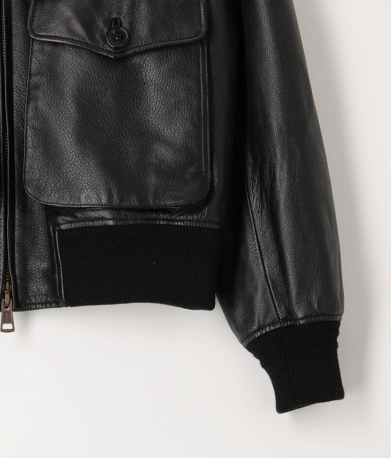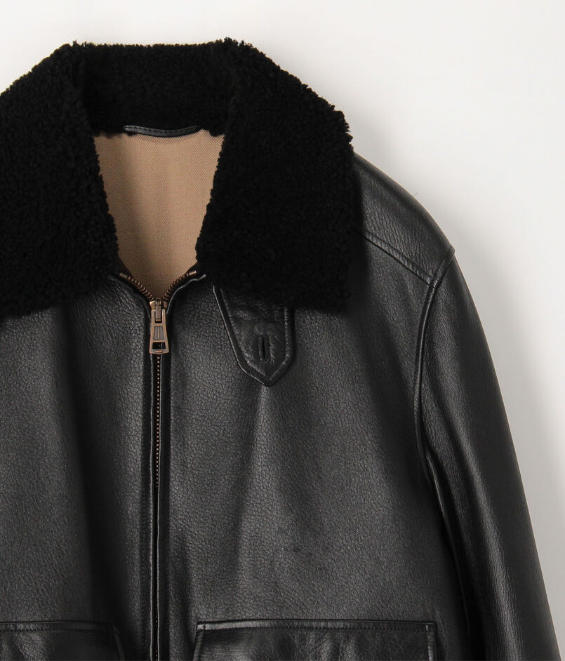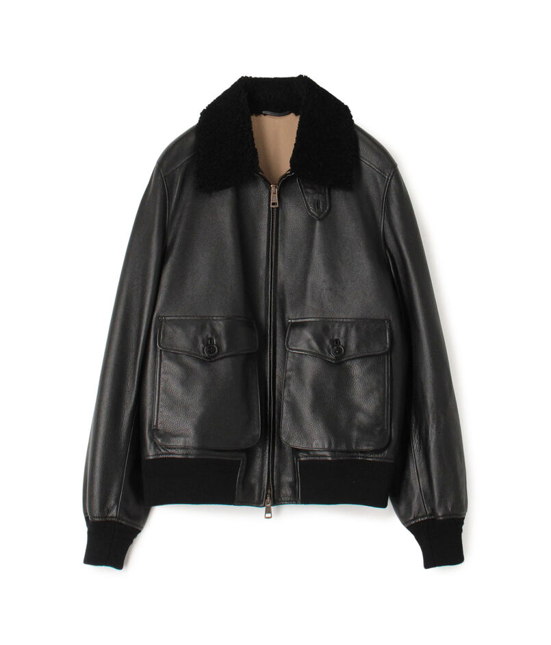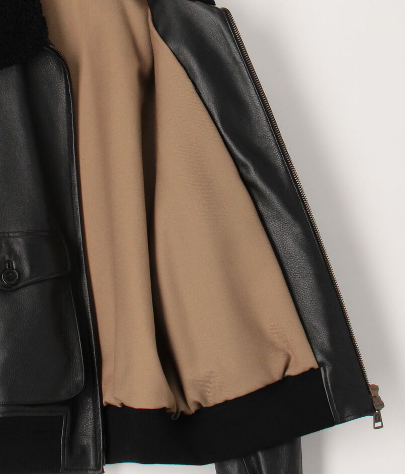 伊〈DENIM(デニム)〉社製のラムナッパに型押し加工したレザーを使用したG1タイプのボンバージャケット。
