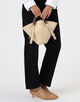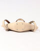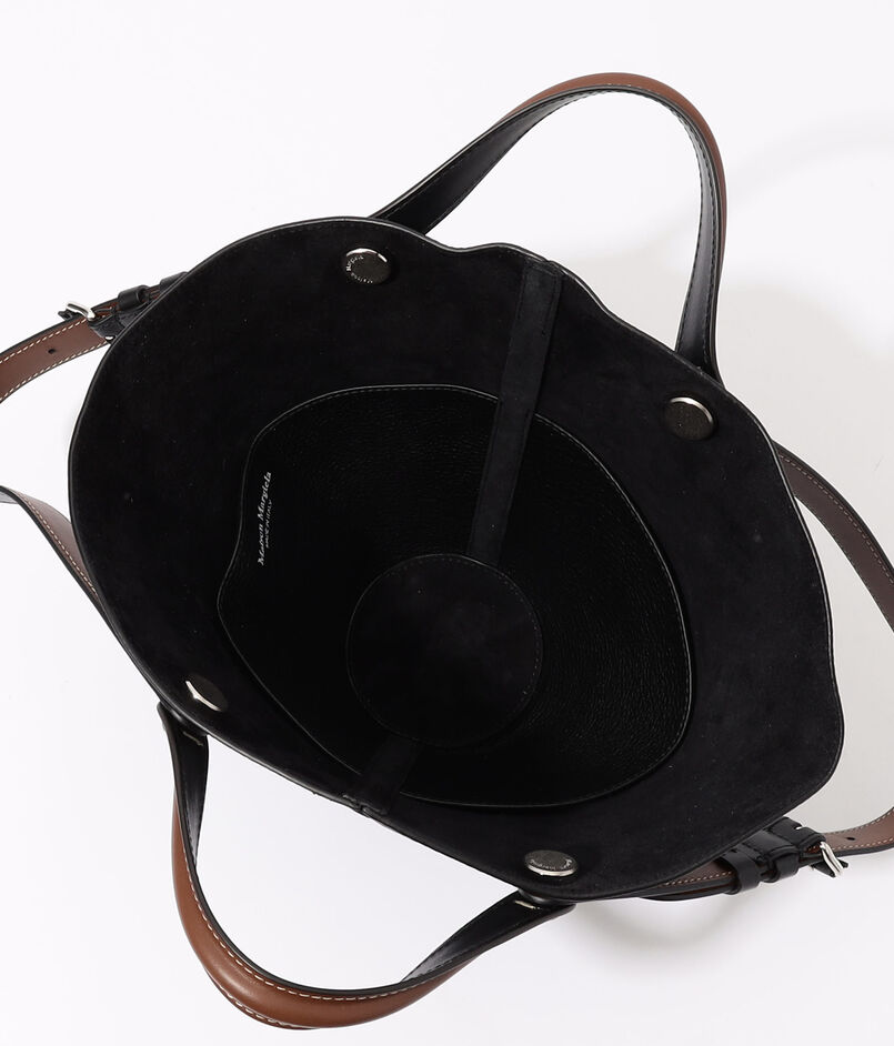 伝統的な革細工の技法を用いられたストラップの接合部や、美しいフォルムを保ち自立させてくれる底部のスタッズなど、ブランドらしいこだわりが光ります。