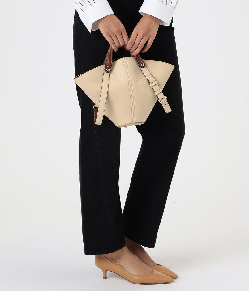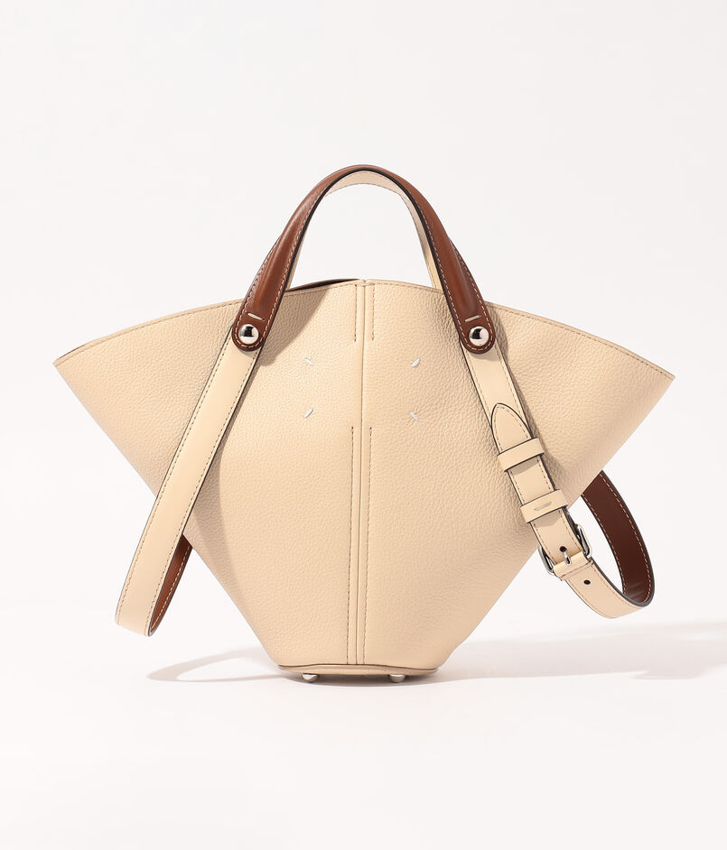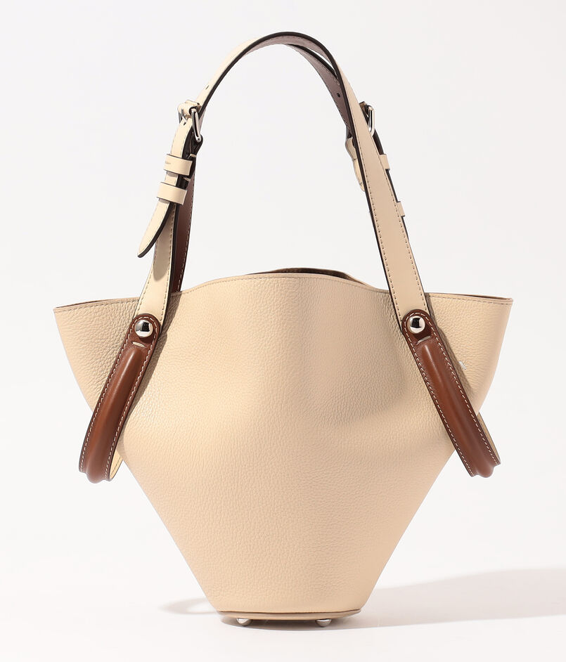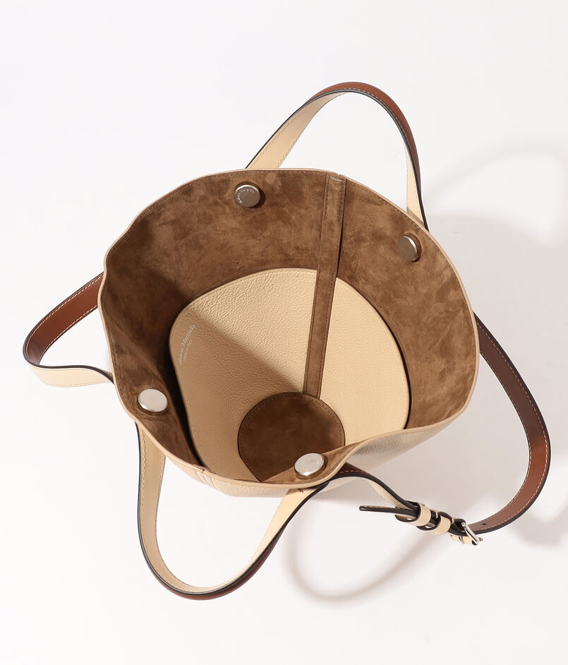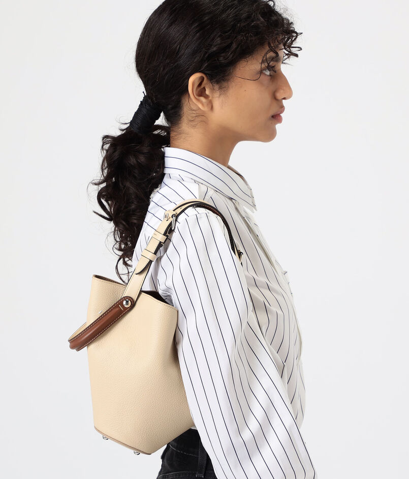 しなやかなカーフレザーを用いた、クラシカルなレザーワークと洗練されたコニカル型のシルエットが魅力のバッグ。