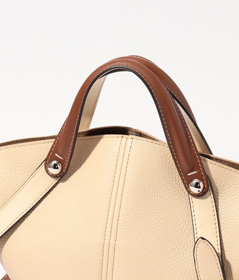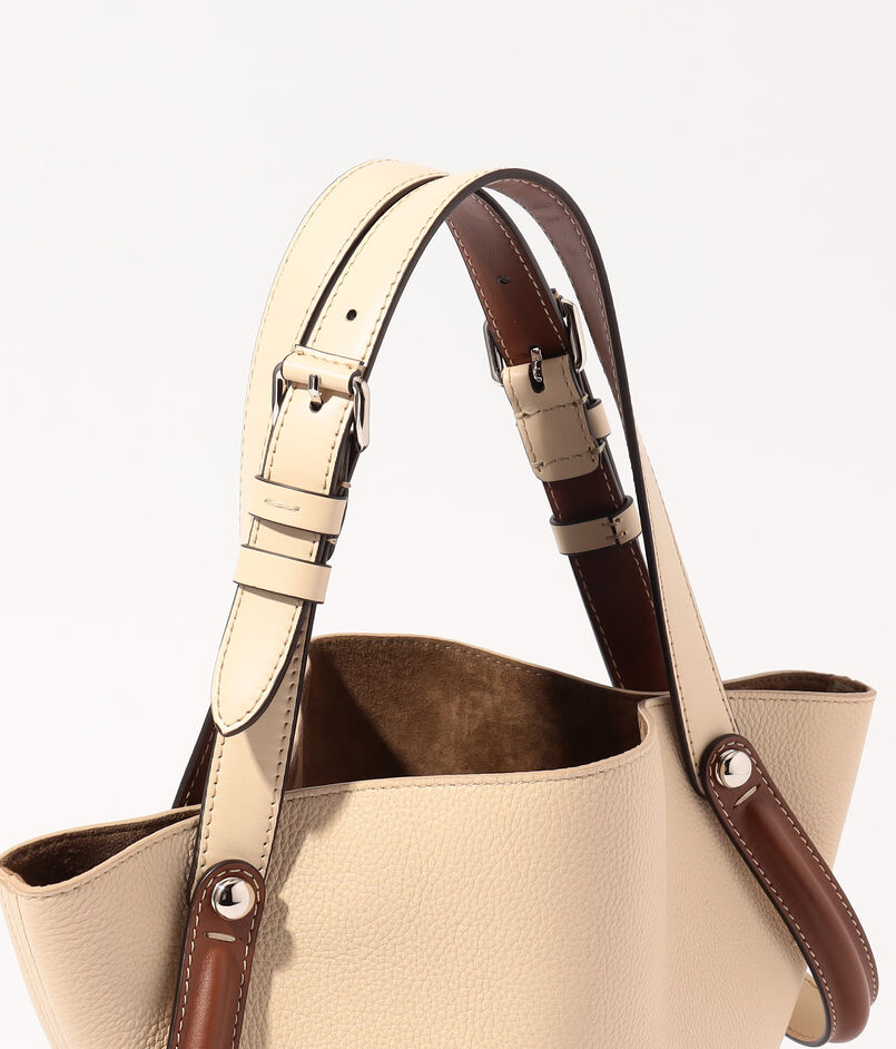 トップハンドルは伝統的な馬具を想起させ、コントラストカラーのストラップにより多彩なスタイリングが可能。