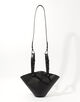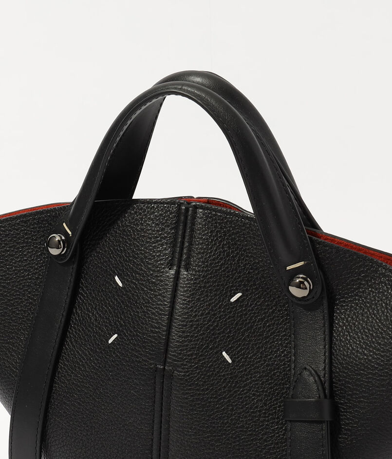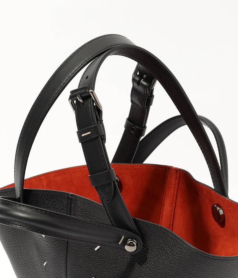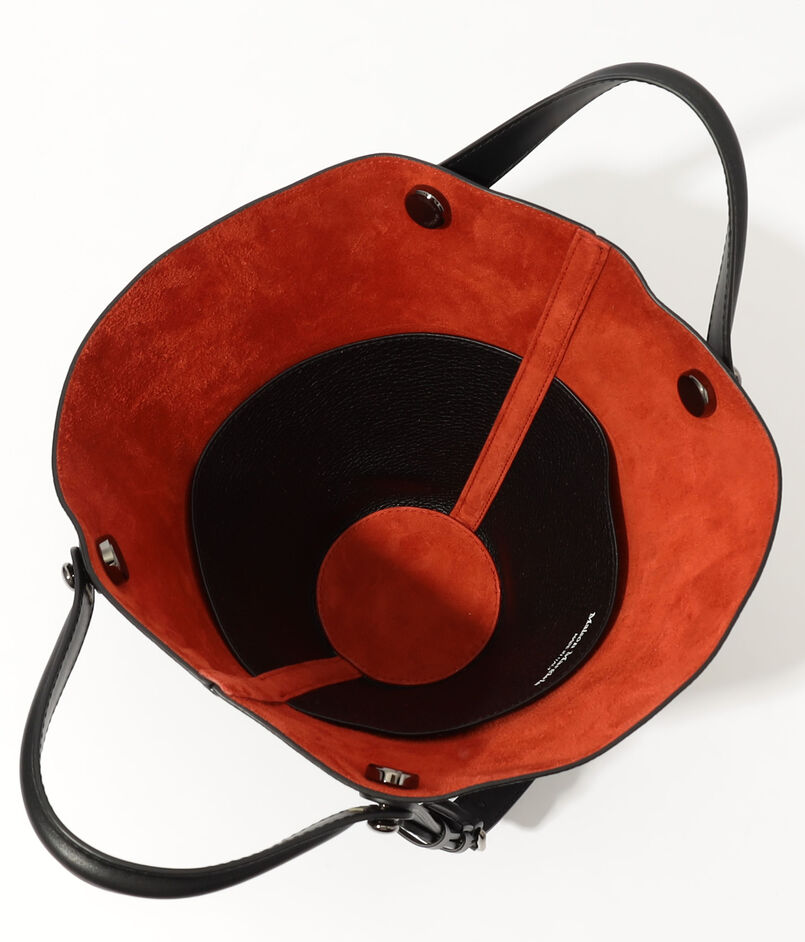 伝統的な革細工の技法を用いられたストラップの接合部や、美しいフォルムを保ち自立させてくれる底部のスタッズなど、ブランドらしいこだわりが光ります。