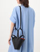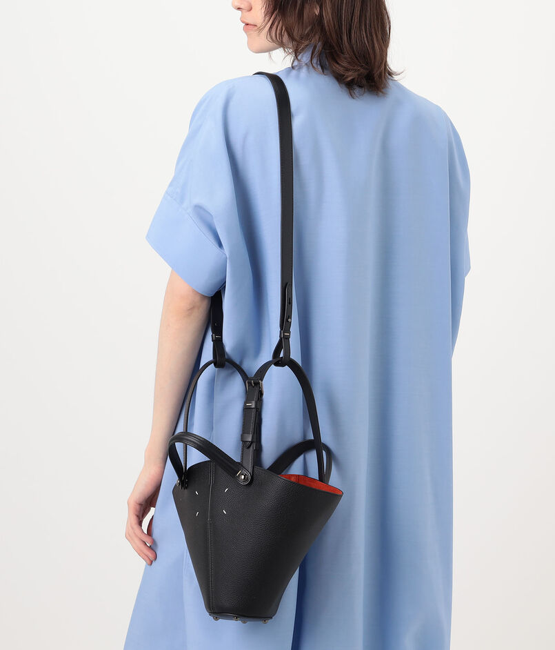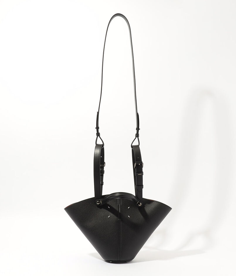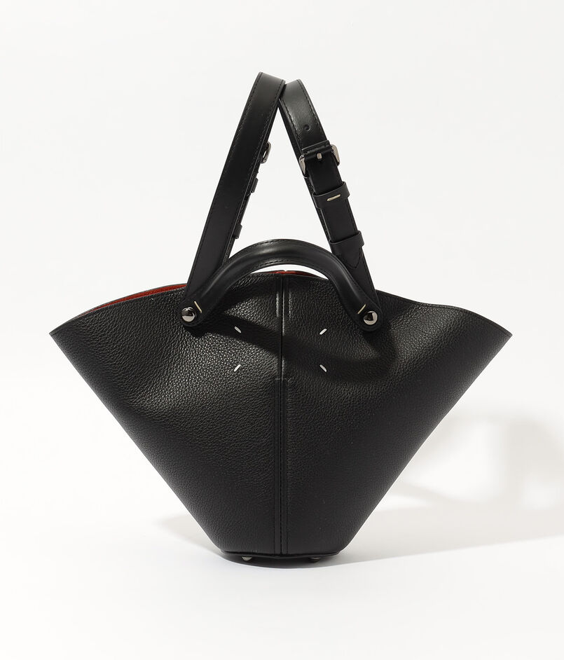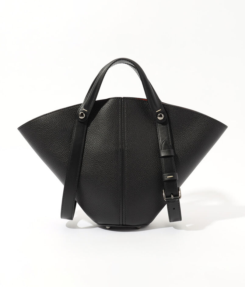 しなやかなカーフレザーを用いた、クラシカルなレザーワークと洗練されたコニカル型のシルエットが魅力のバッグ。