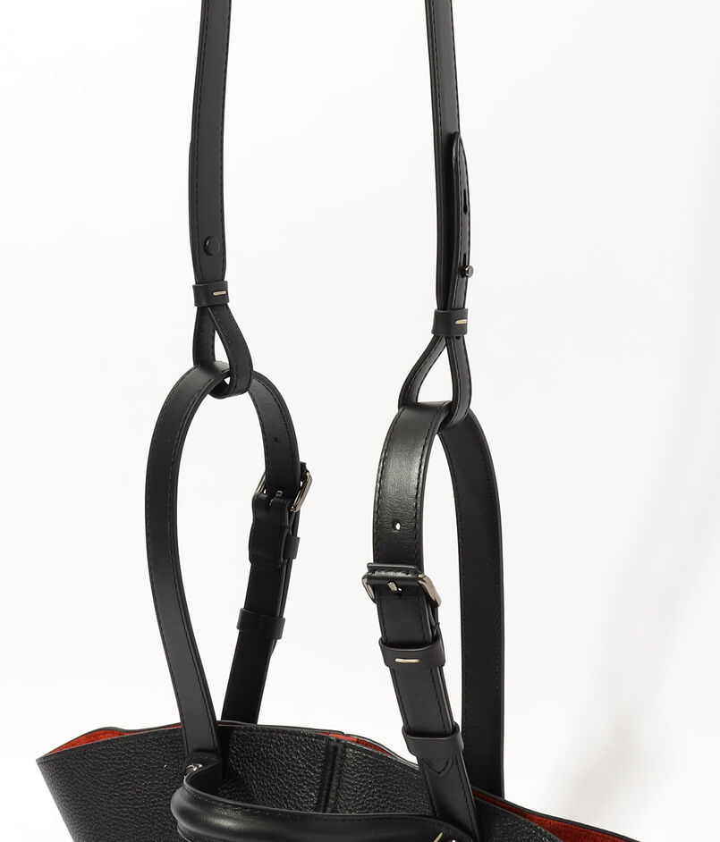 トップハンドルは伝統的な馬具を想起させ、3種のストラップにより多彩なスタイリングが可能。