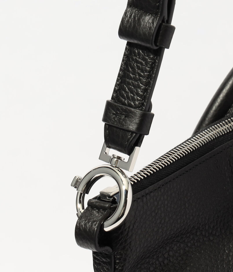 トップハンドルと取り外し可能なストラップにより、多様なシーンでスタイリングが可能。