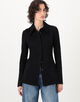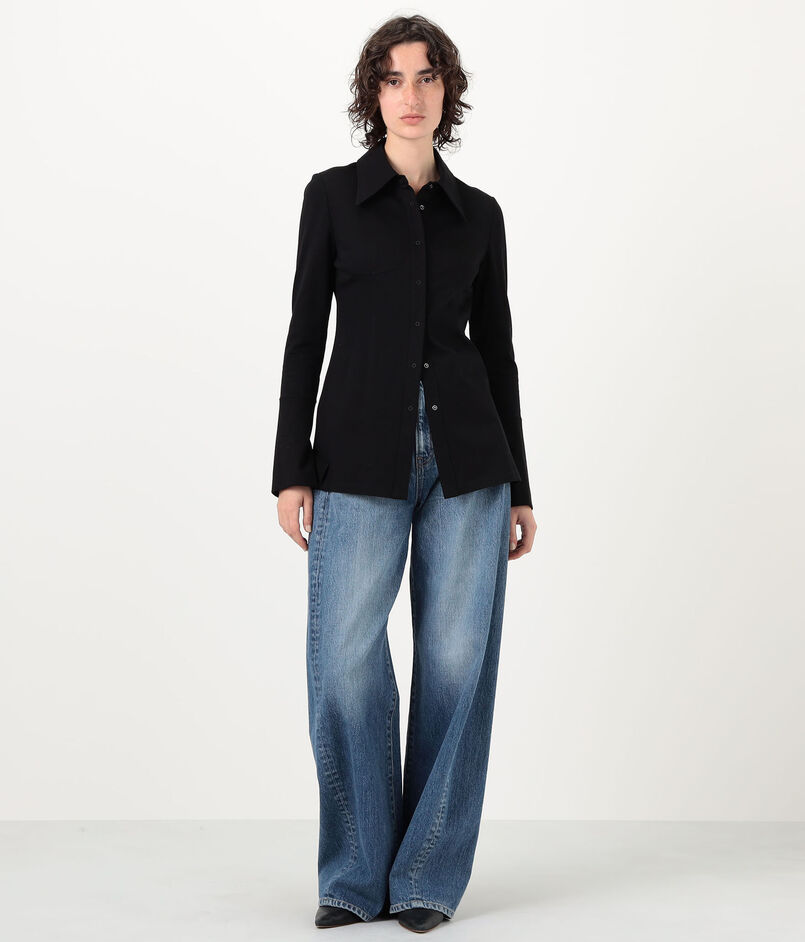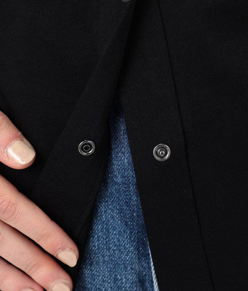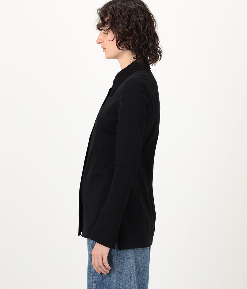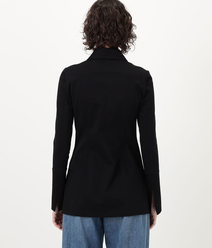 カジュアルな素材ながら構築的なパターンメイキングが身体を立体的に見せ、スナップボタン仕様のフロントにスリット入りのロングカフスが、上品さとリラックスムードの両立を叶えてくれます。
