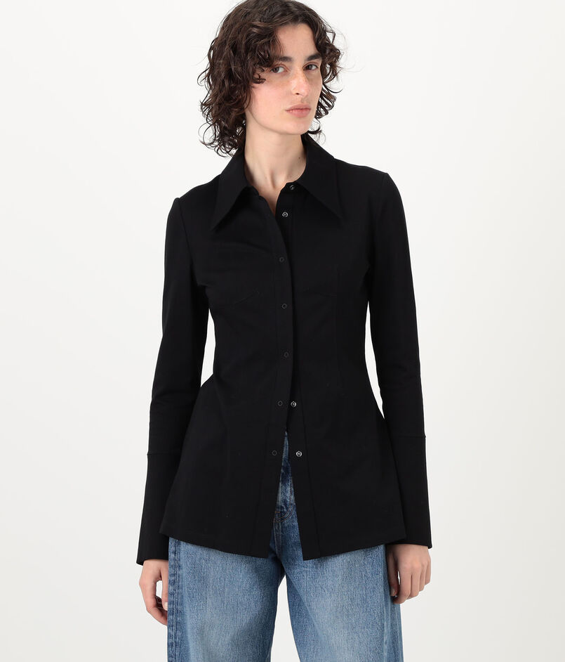 ブランドのアイコニックなカッティングとシルエットによるコットンジャージーシャツ。
