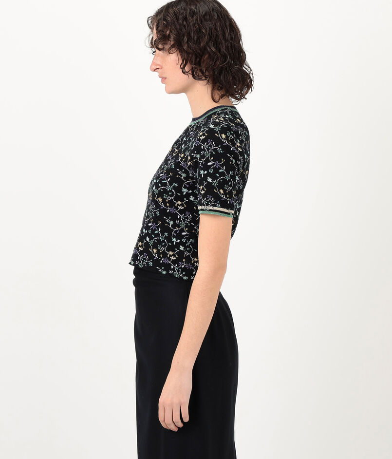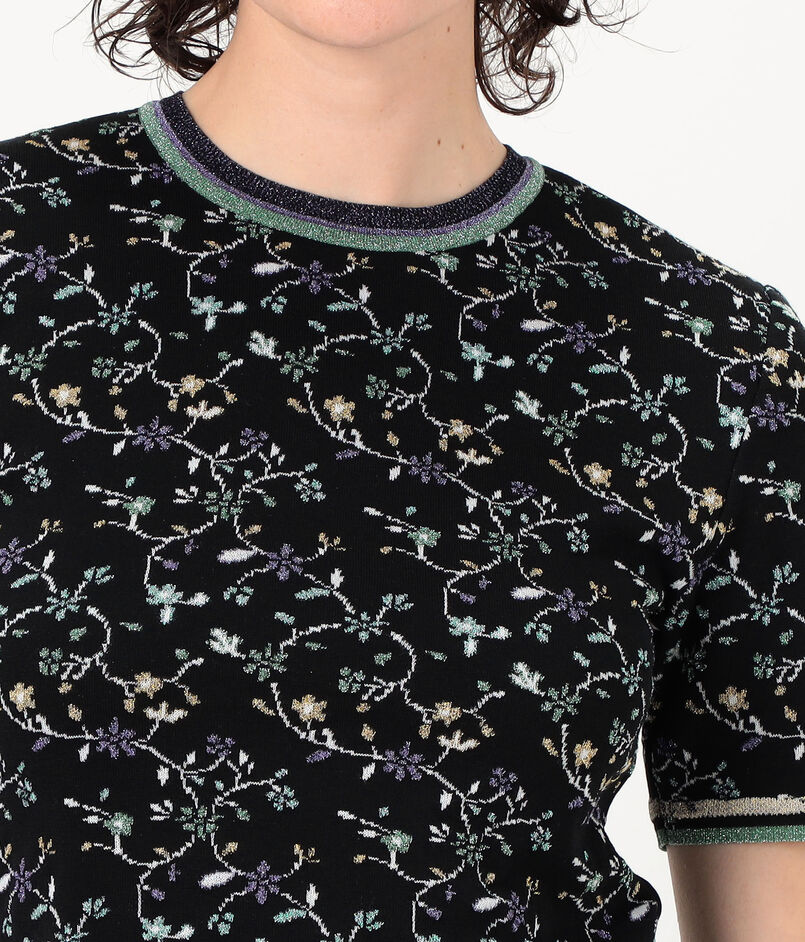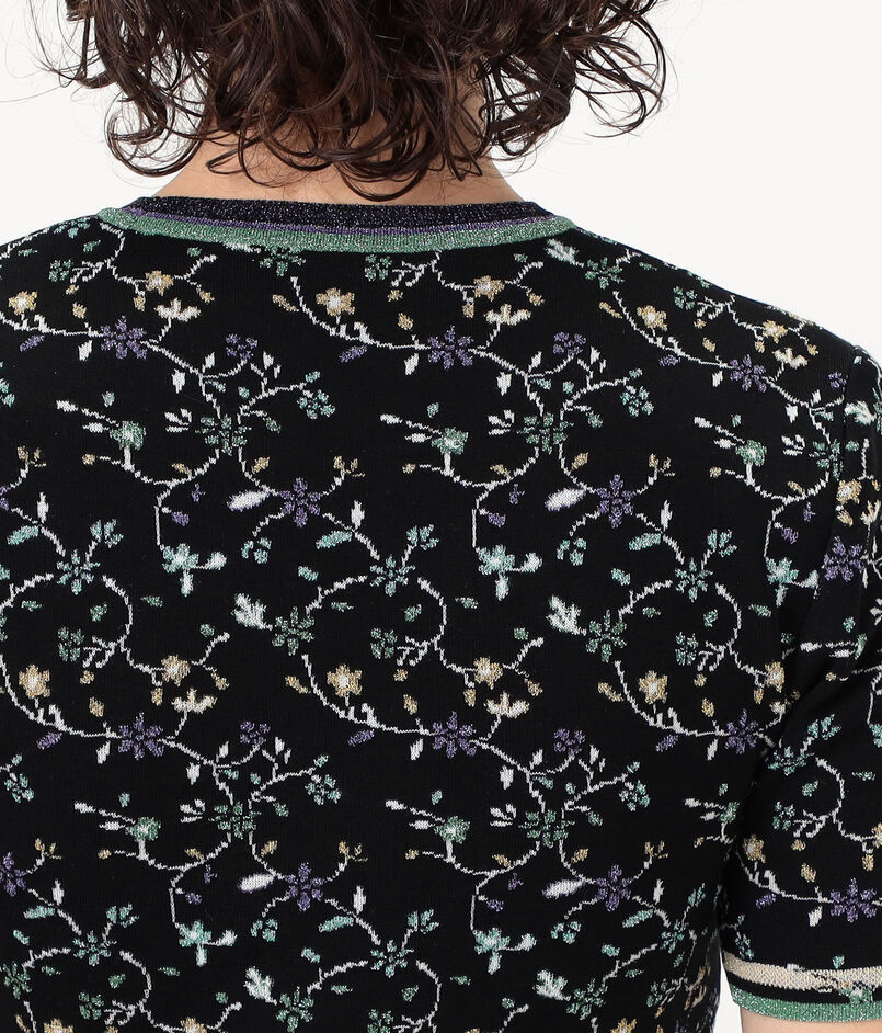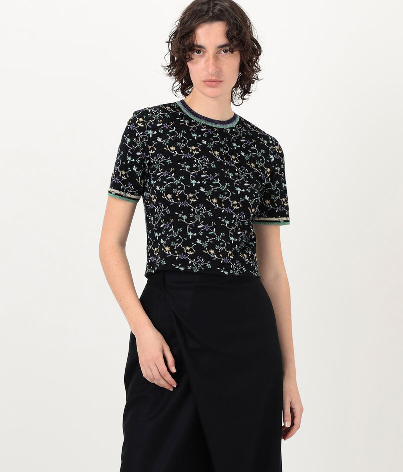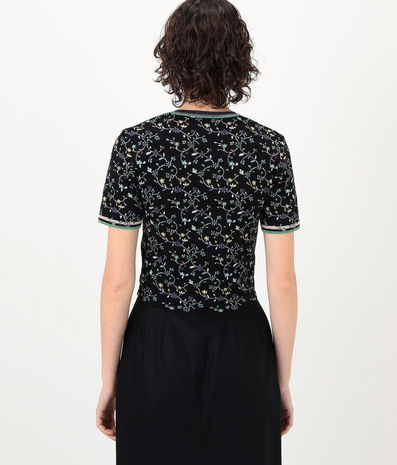Mame Kurogouchi Floral Motif Glitter Short Sleeve Knit Top
