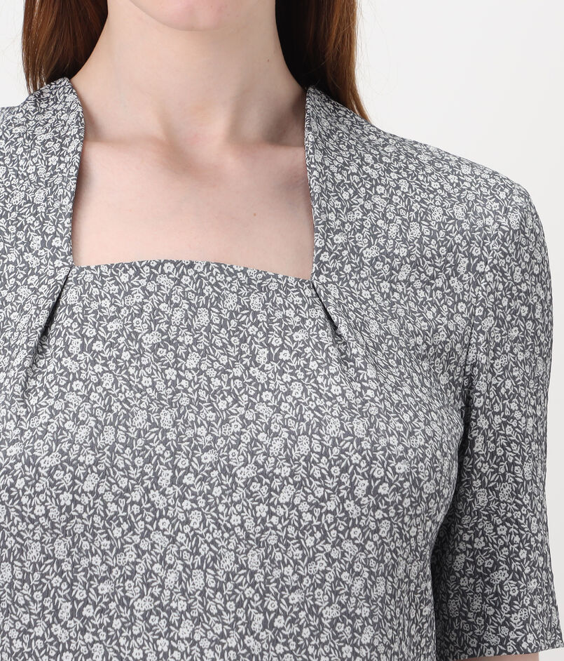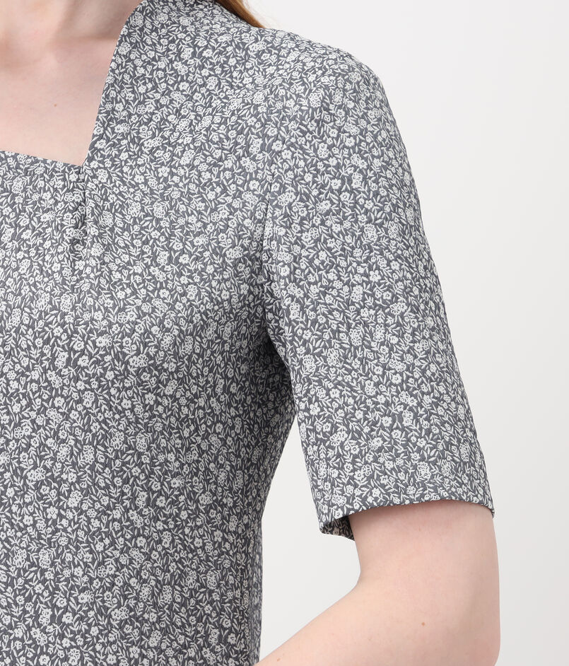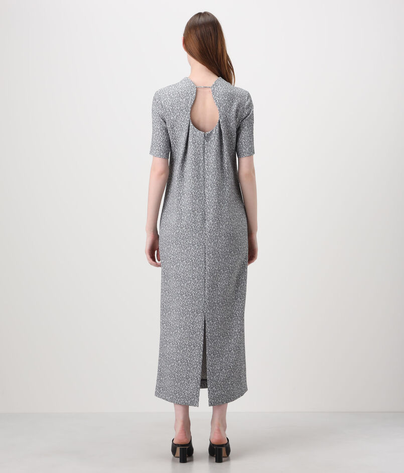 生地の表面に独特な凹凸のある小花柄ジャカード生地を使用したドレス。