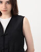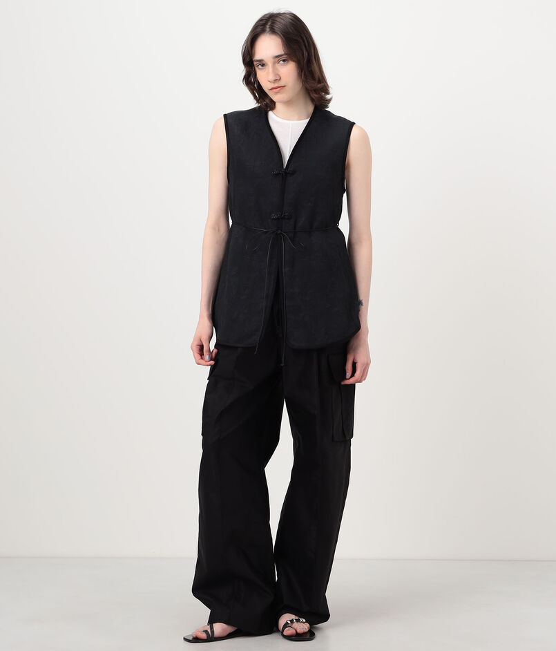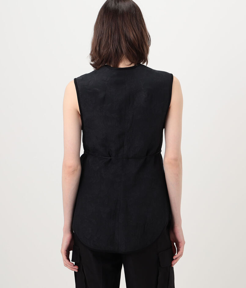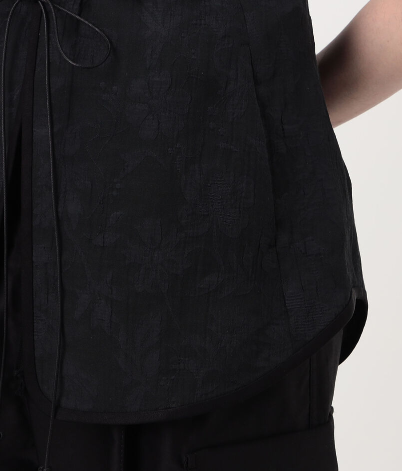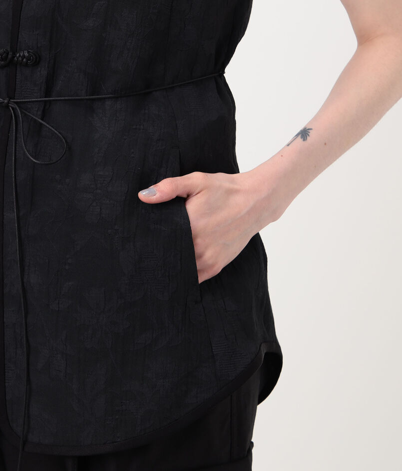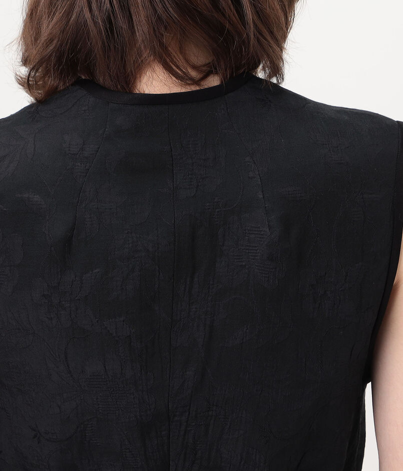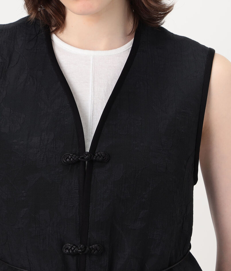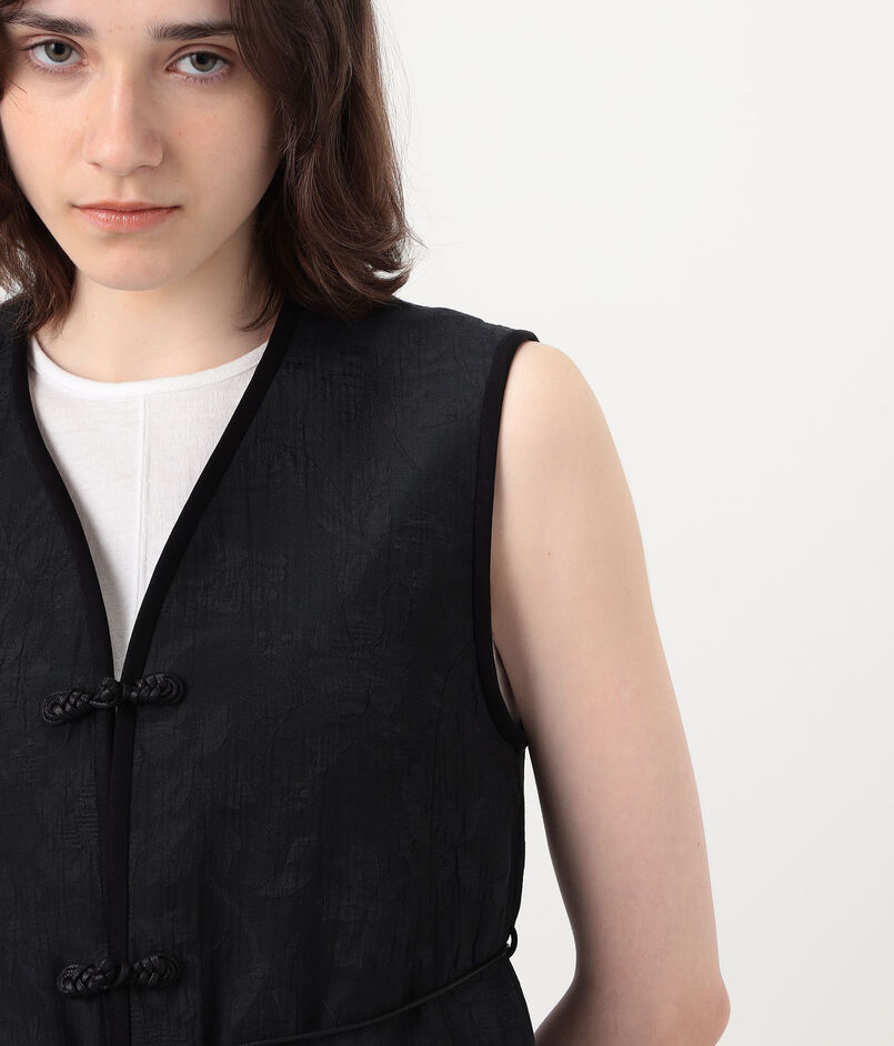 やわらかな光沢が上品な印象を与える花柄ベスト。