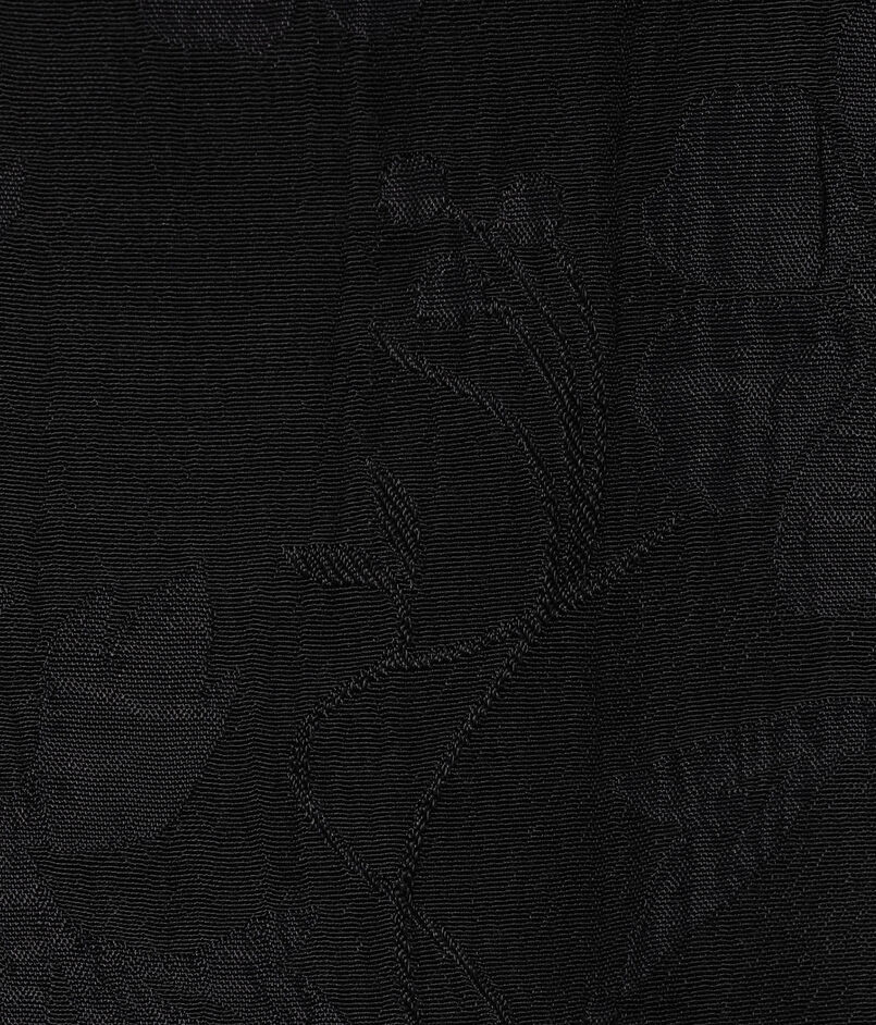ヨコ糸の縮みによって花柄の凹凸を表現し、タテ糸にはレーヨンのブライト糸を用いることで部分的に光沢を。