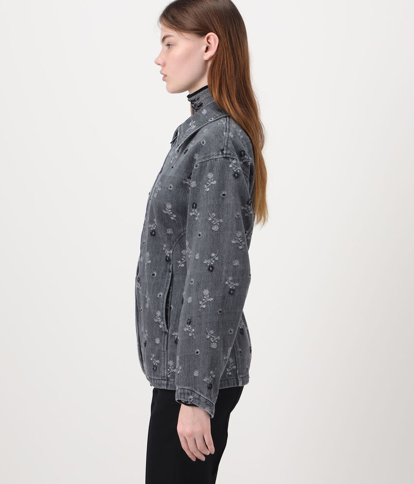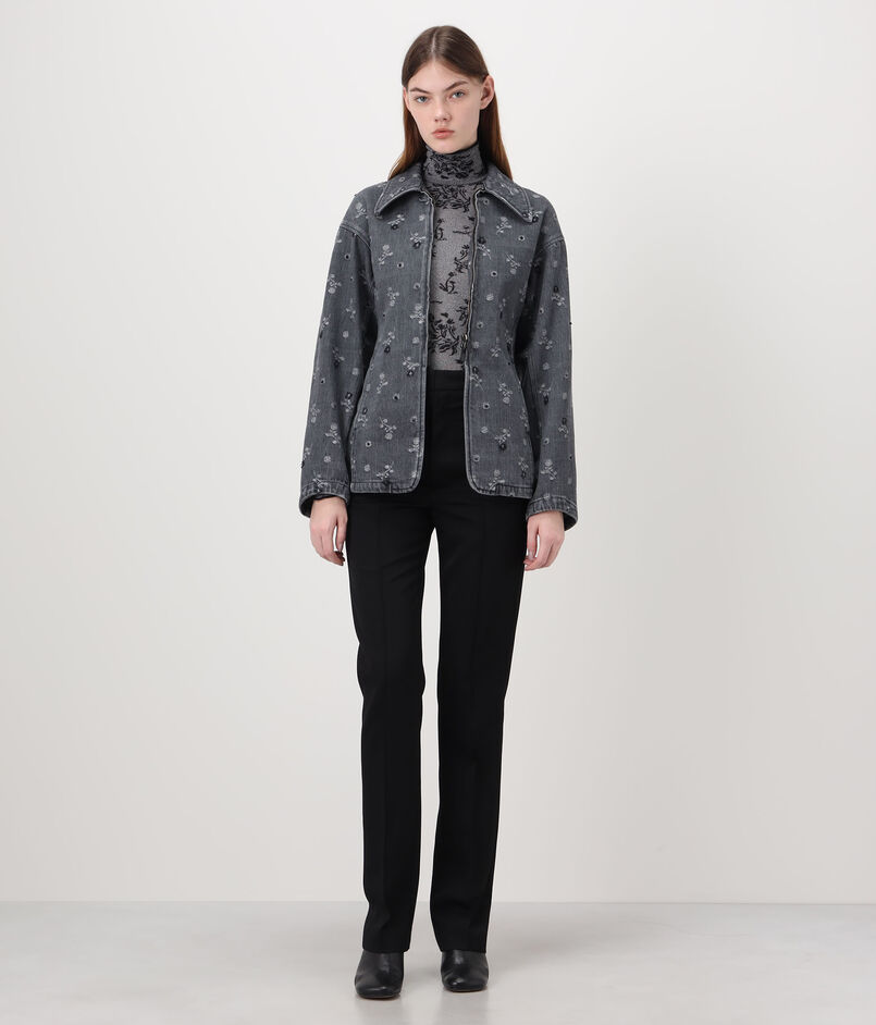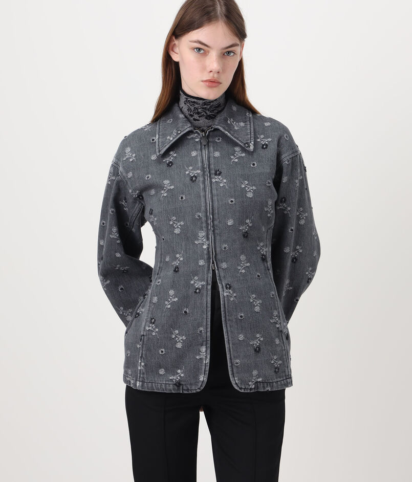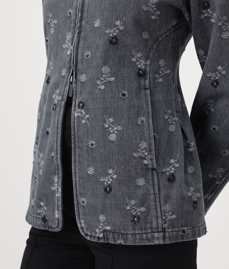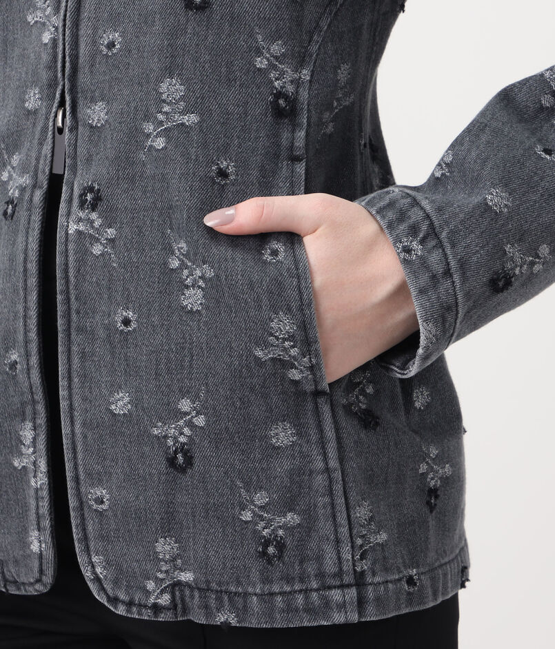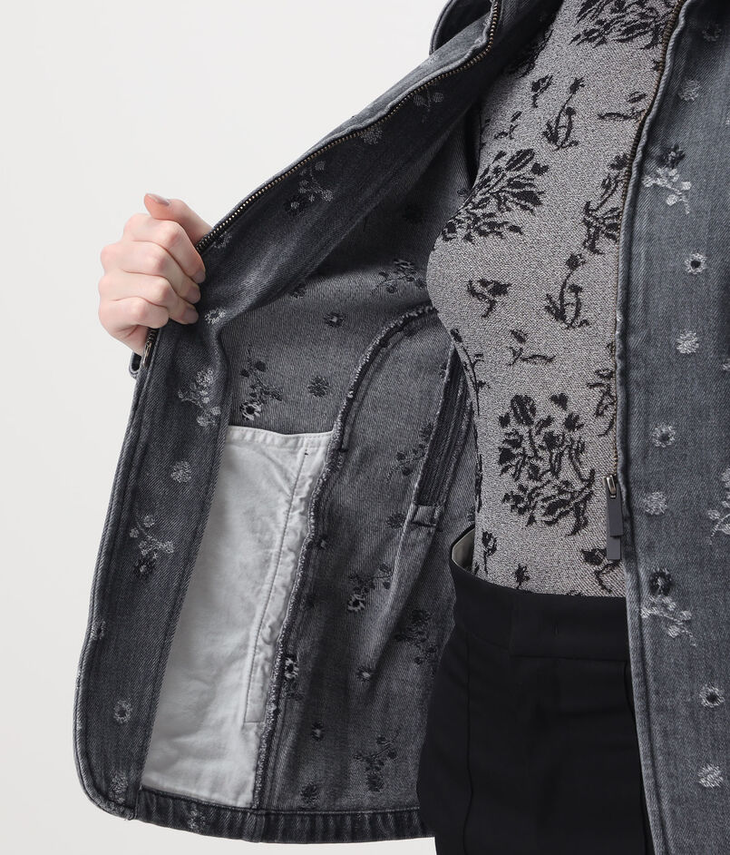 小花柄のジャカードが今季のムードを表現するデニムジャケット。