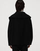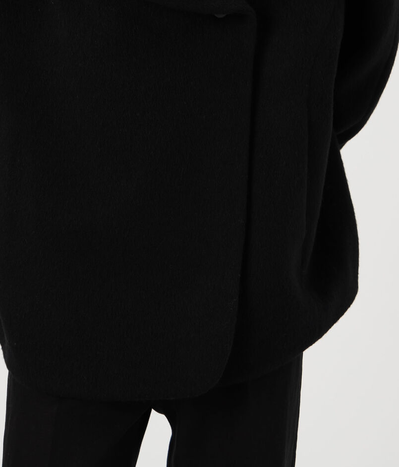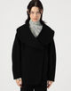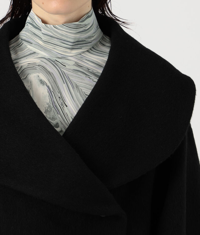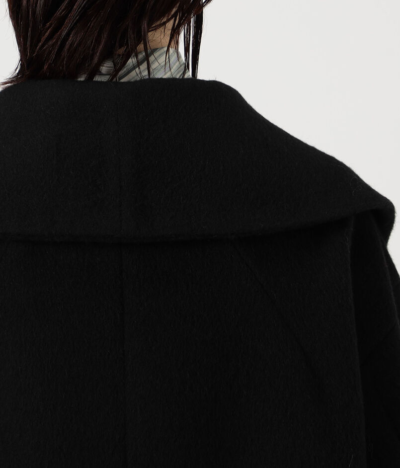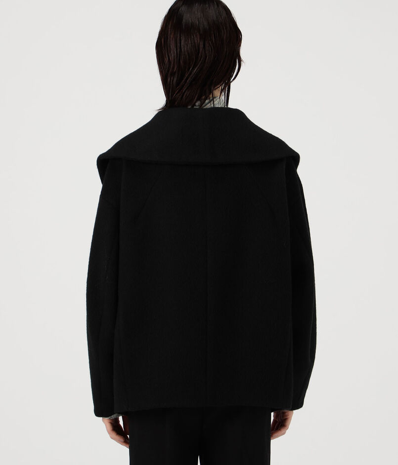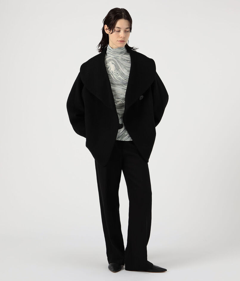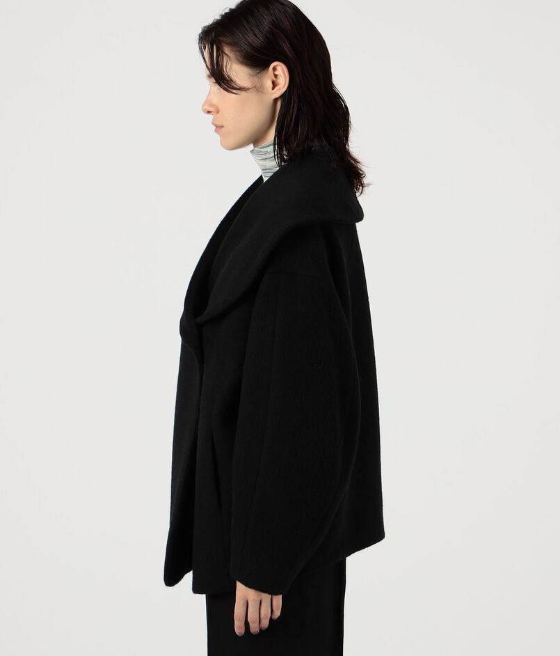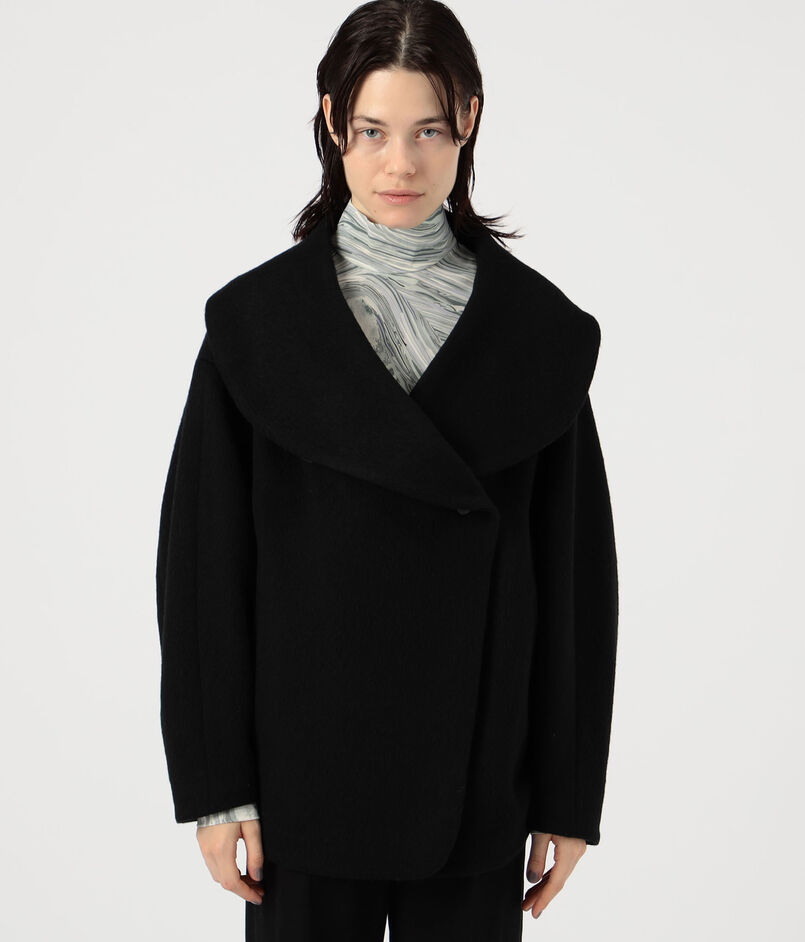 大胆な大きな襟と丸みを帯びた女性らしいフォルムがコンセプチュアルな印象のショートコート。