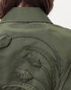 高密度のナイロンツイルを使用したしっかりと肉感のある生地を使用し、記憶の中の景色に広がるチューリップをバックスタイルに立体刺繍することで、ヴィンテージ感漂うミリタリースタイルの中に華やかなムードが広がります。