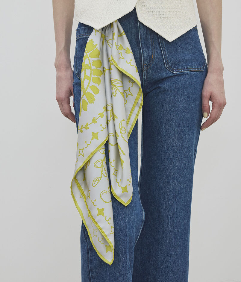 首元に巻くのはもちろん、ベルト代わりに腰に巻いたりと様々なスタイリングが楽しめる一枚です。