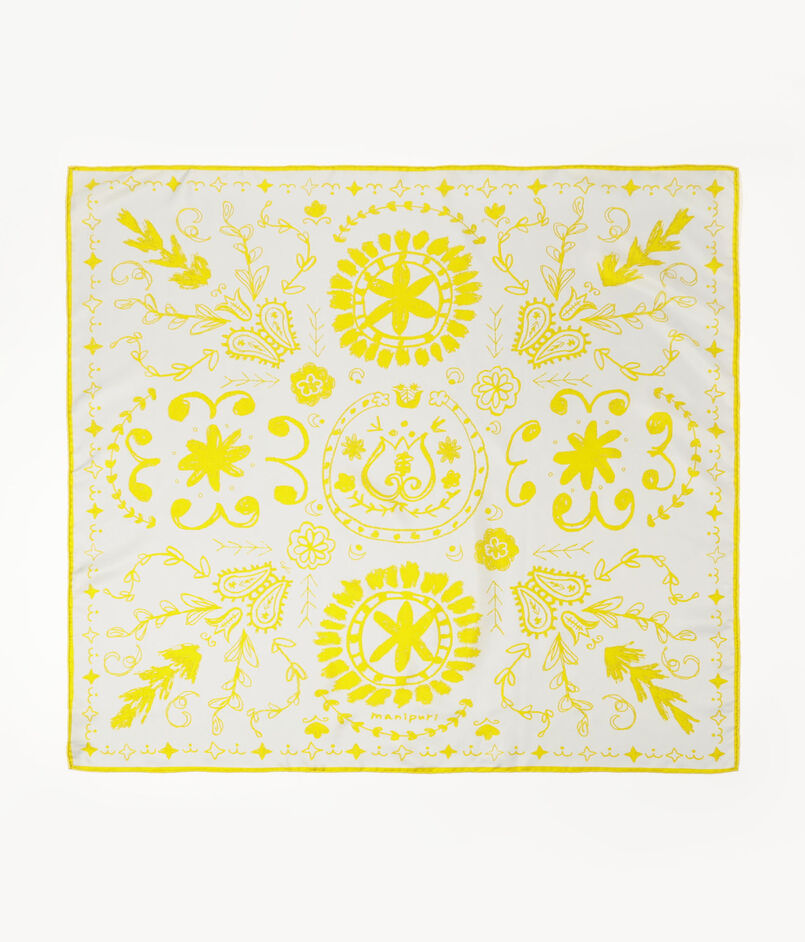 ヴィンテージスカーフからインスピレーションを得てつくられるスカーフやストールは、全て熟練の職人により一版ずつ手作業で丁寧に染め上げる手捺染(ハンドプリント)で作られています。