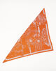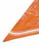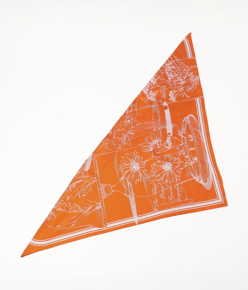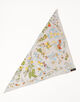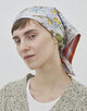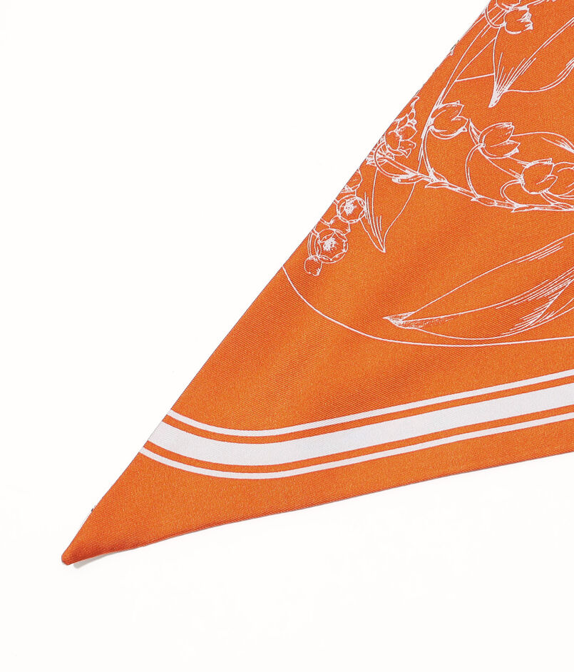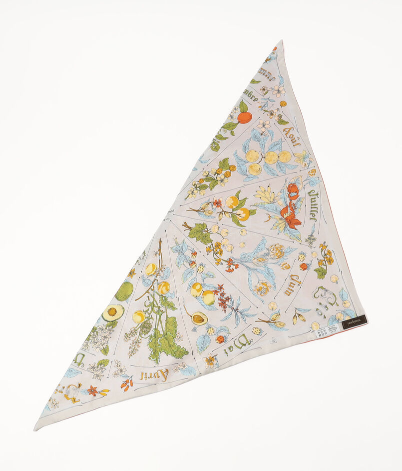 65㎝のスクエアスカーフを対角線でカットして、2柄をリバーシブル仕様にデザインされた三角形のスカーフ。ダブルフェイスなので、スタイリングによって柄を変えて楽しめます。