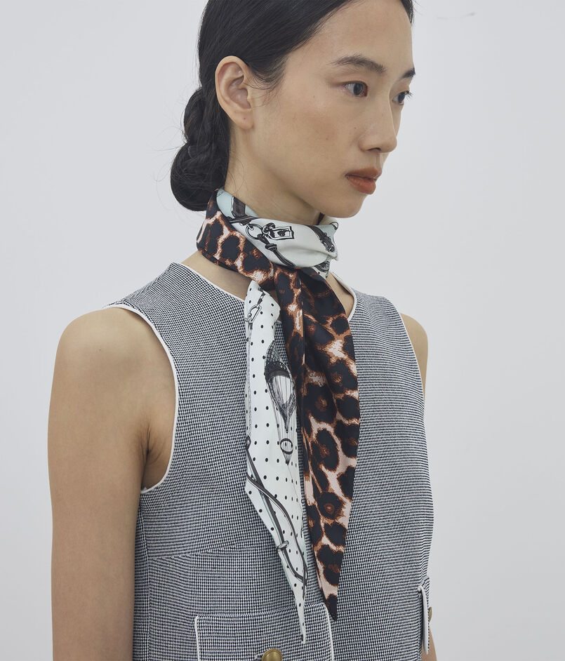 シャツやジャケットの衿元に巻いたりと、様々なアレンジが楽しめます。