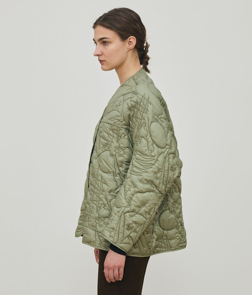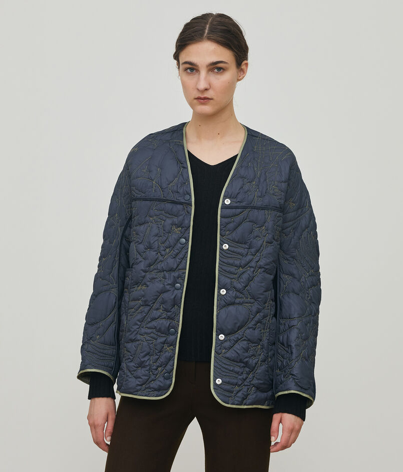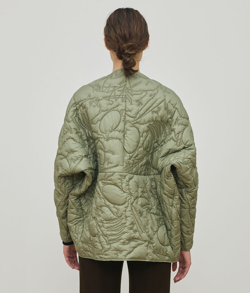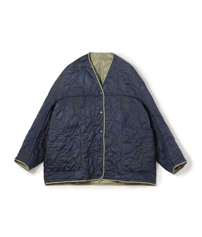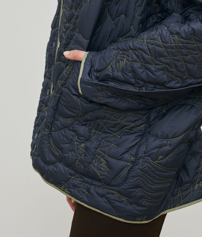 丸みのあるフォルムが特徴的な、リバーシブルのキルティングジャケット。