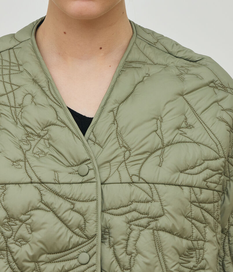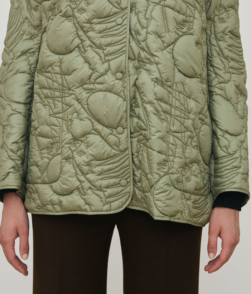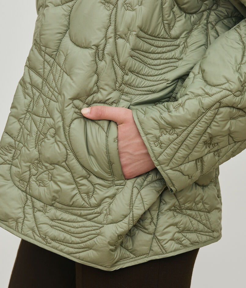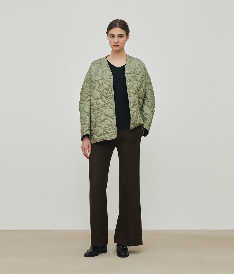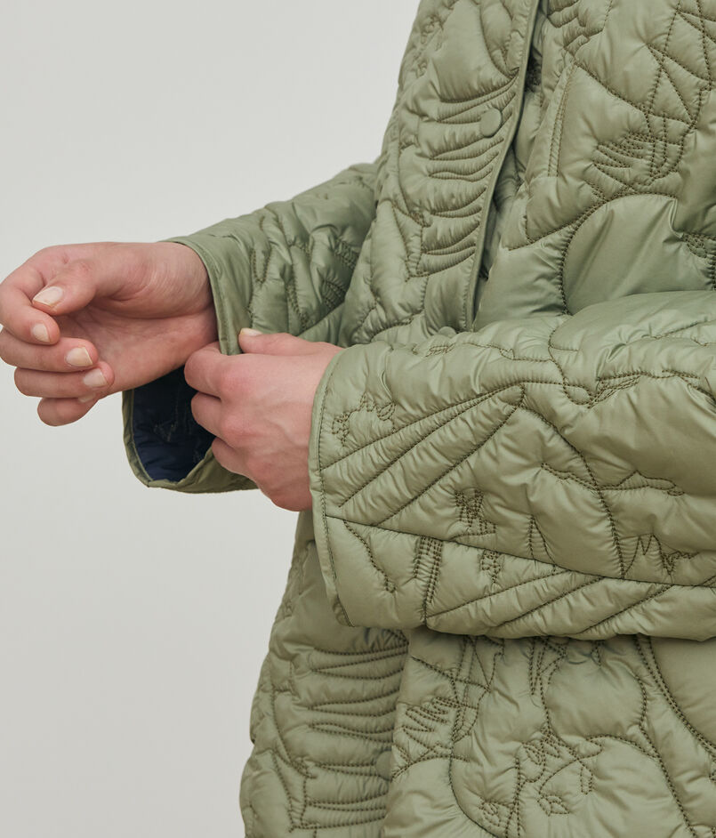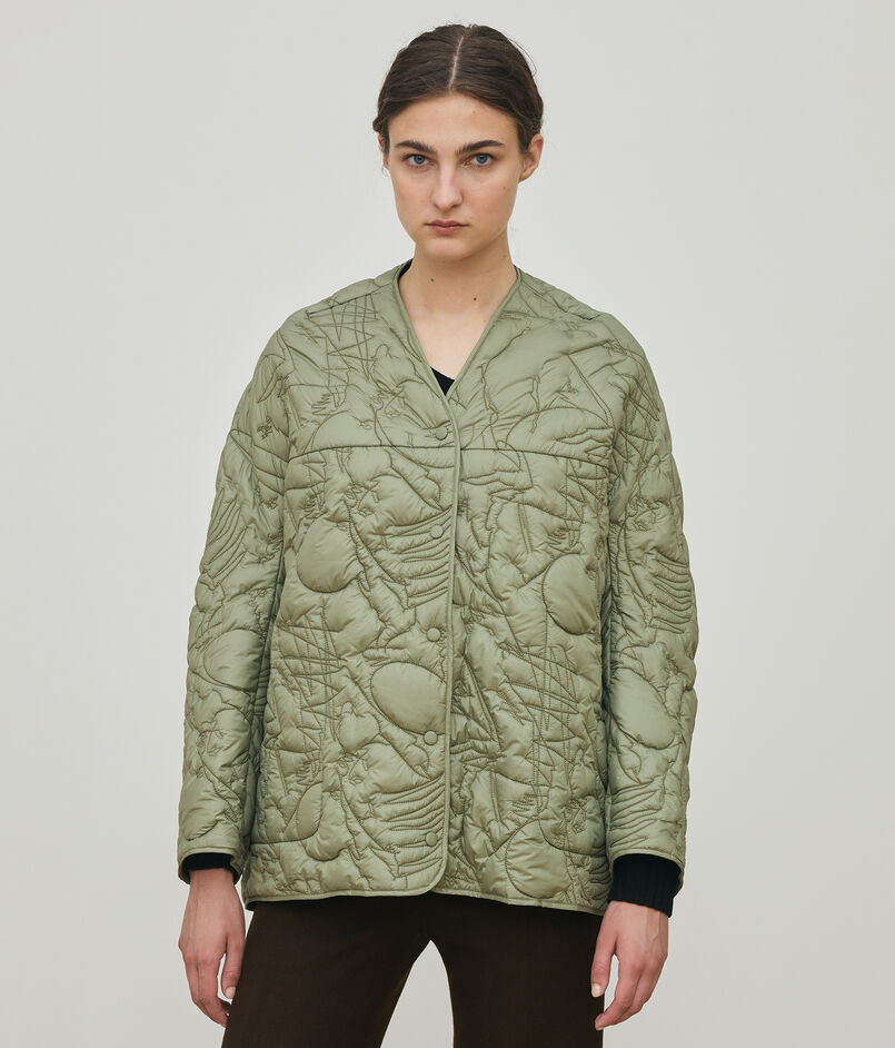 丸みのあるフォルムが特徴的な、リバーシブルのキルティングジャケット。