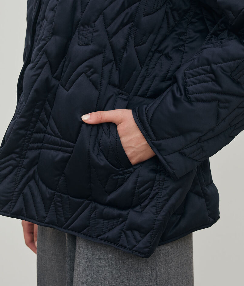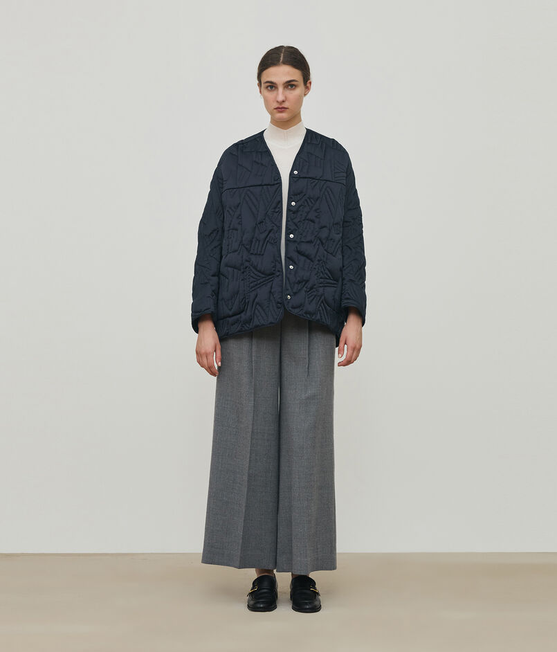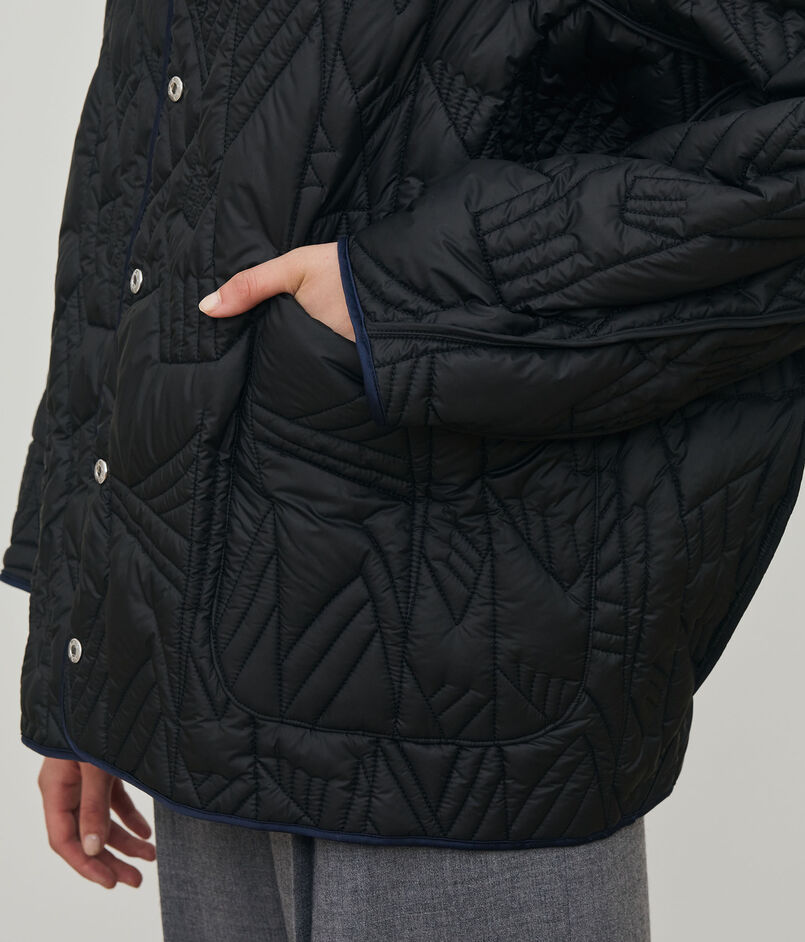 丸みのあるフォルムが特徴的な、リバーシブルのキルティングジャケット。