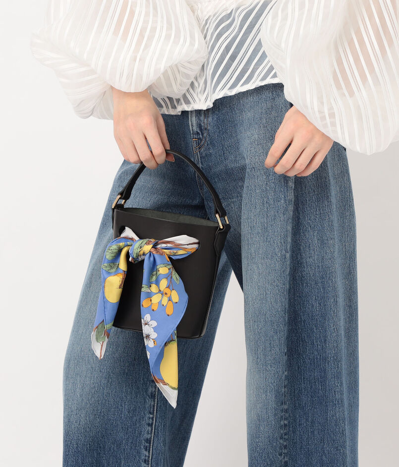 スカーフの華やかな柄がアクセントとなり、シンプルな装いにも映えるデザインに仕上げています。