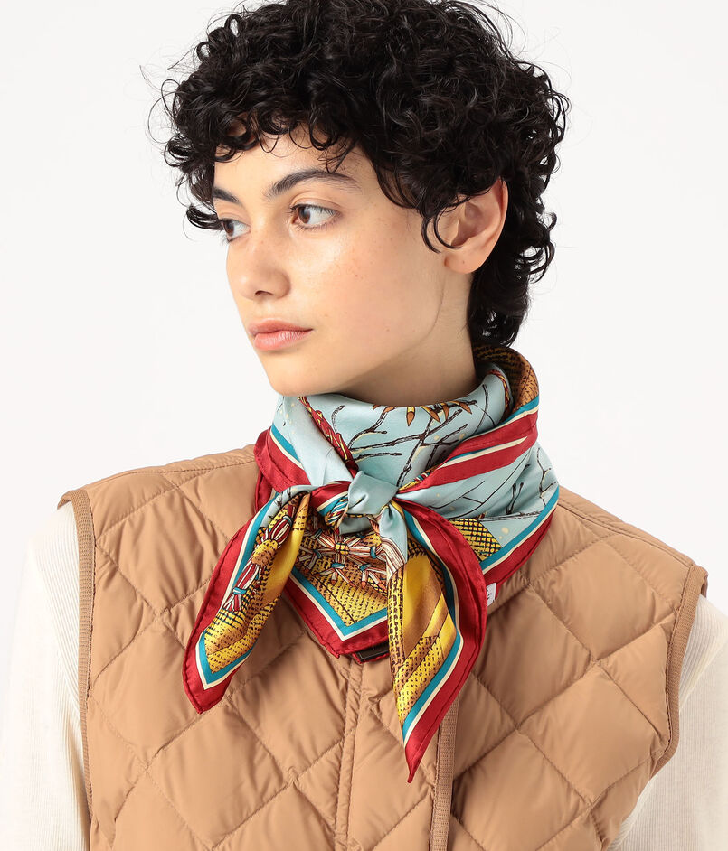 ヴィンテージスカーフからインスピレーションを得てつくられるスカーフやストールは、全て熟練の職人により一版ずつ手作業で丁寧に染め上げる手捺染(ハンドプリント)で作られています。