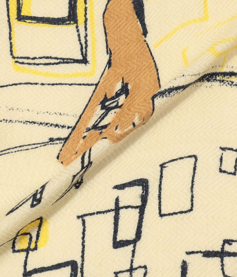 インド製のウール・シルクの特注生地を使用し、熟練の職人が1枚ずつ手捺染で丁寧に仕上げています。