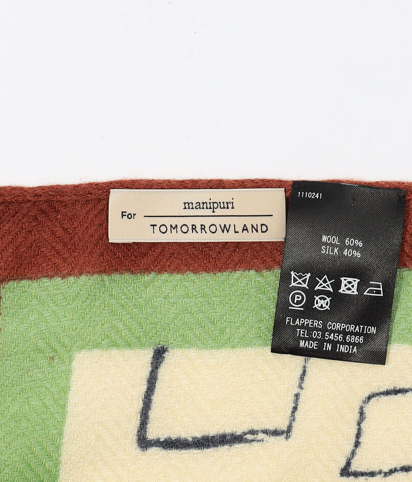 ヘリンボーン地に〈manipuri〉の繊細なスカーフ柄をプリントしたストール。