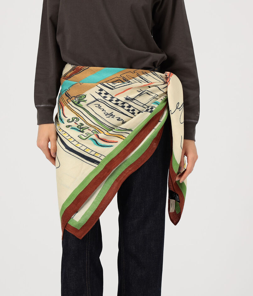ヴィンテージスカーフからインスピレーションを得てつくられるスカーフやストールは、全て熟練の職人により一版ずつ手作業で丁寧に染め上げる手捺染(ハンドプリント)で作られています。