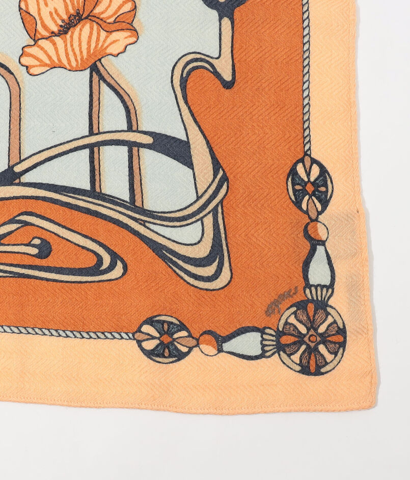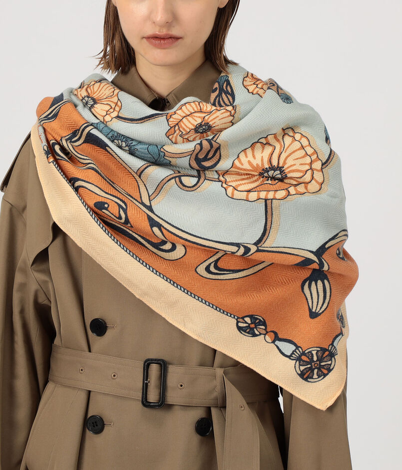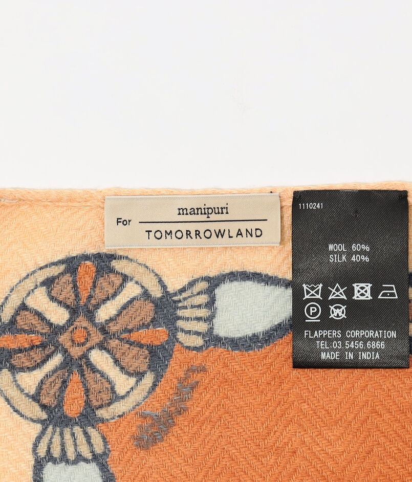 ヘリンボーン地に〈manipuri〉の繊細なスカーフ柄をプリントしたストール。